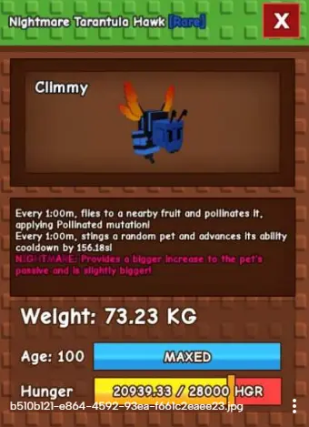 Semi Titanic Nightmare Wasp 67-68 kg cd : 60s (cooldown other pets by 113s) - Grow A Garden