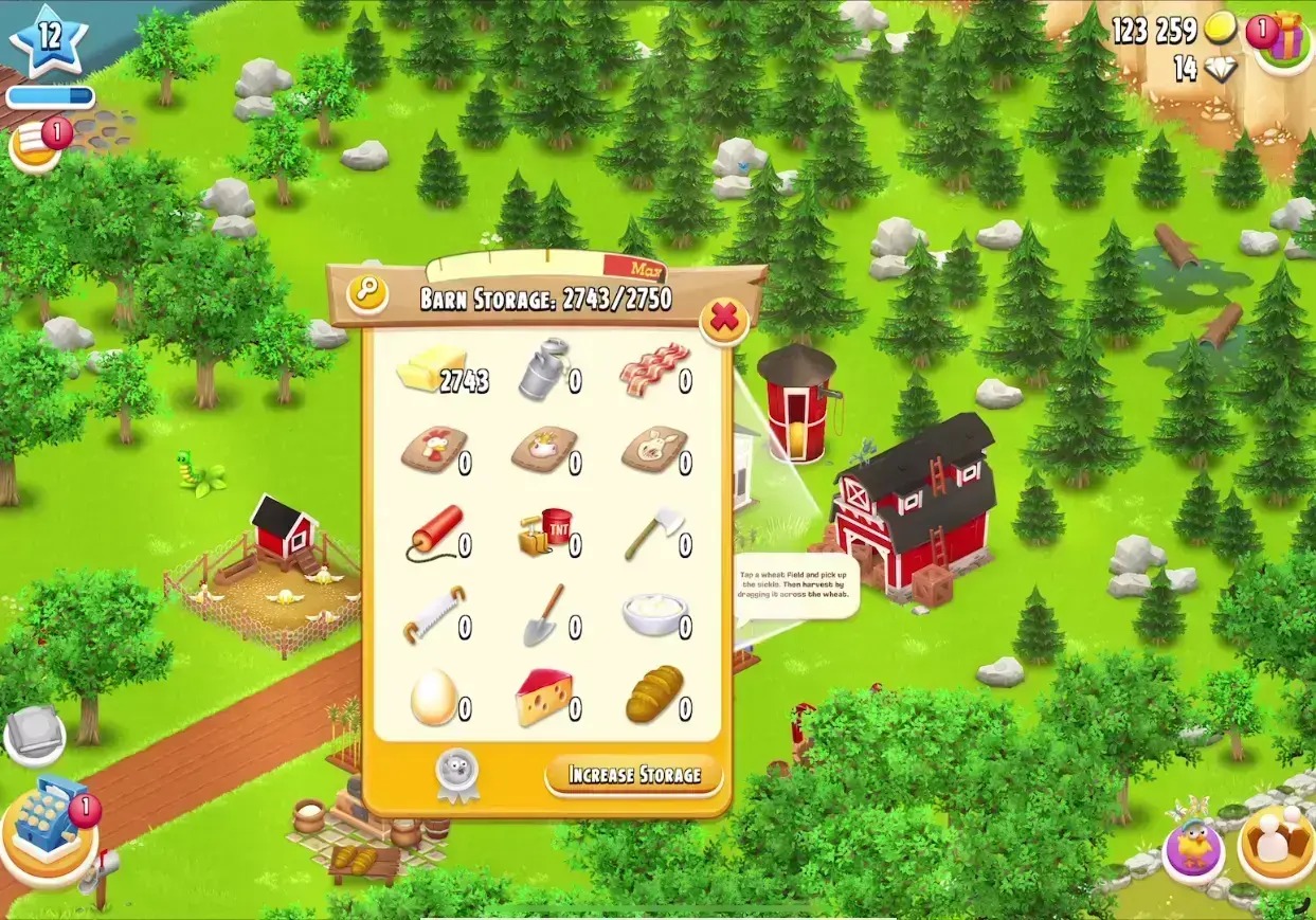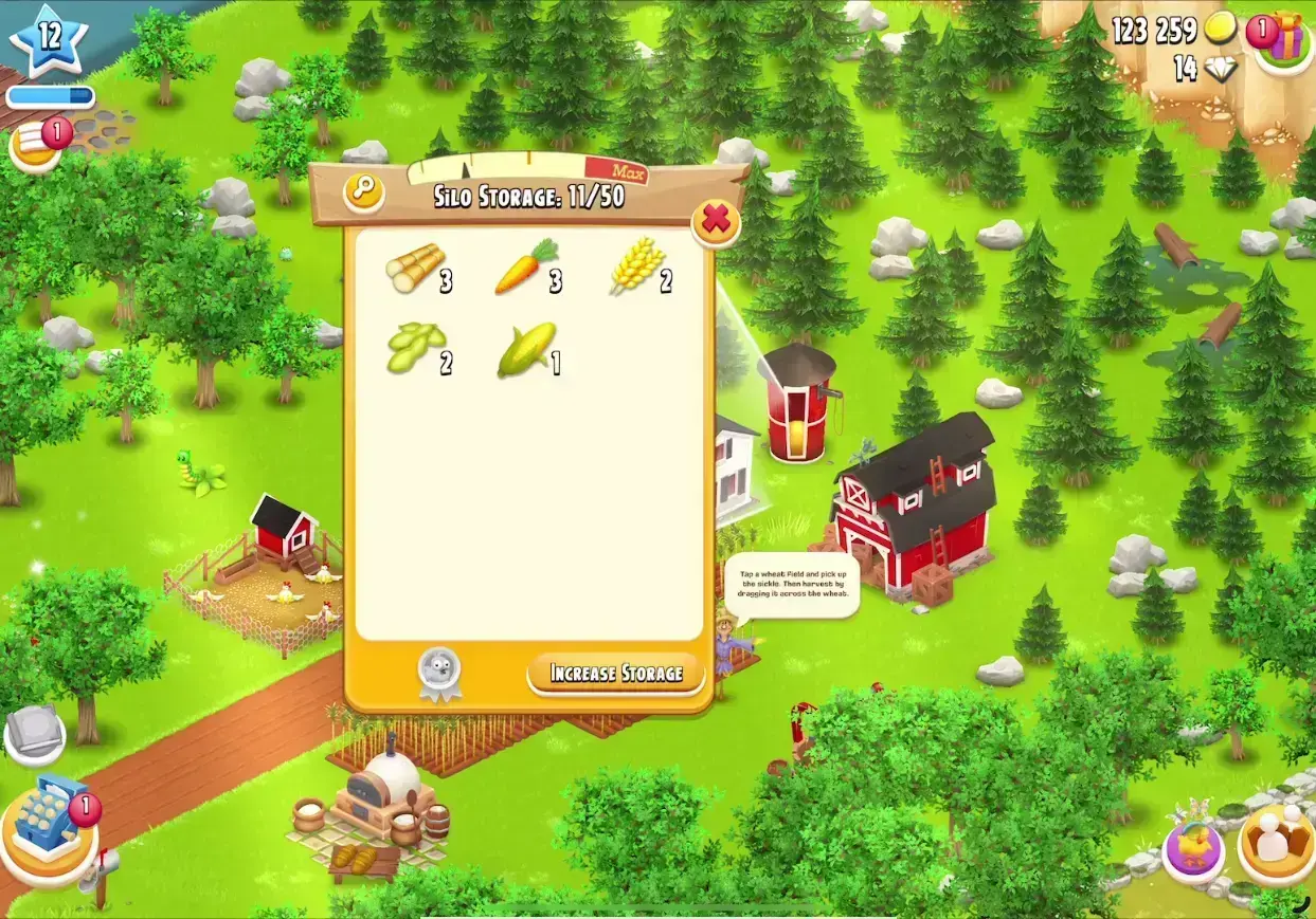 2750 BARN | 12 LVL | 50 SILO | 14 DIAMONDS | 123259 COINS | TRADE MARKET IS BLOCKED | FULL ACCESS | IOS/ANDROID (SCREENSHOTS INSIDE)