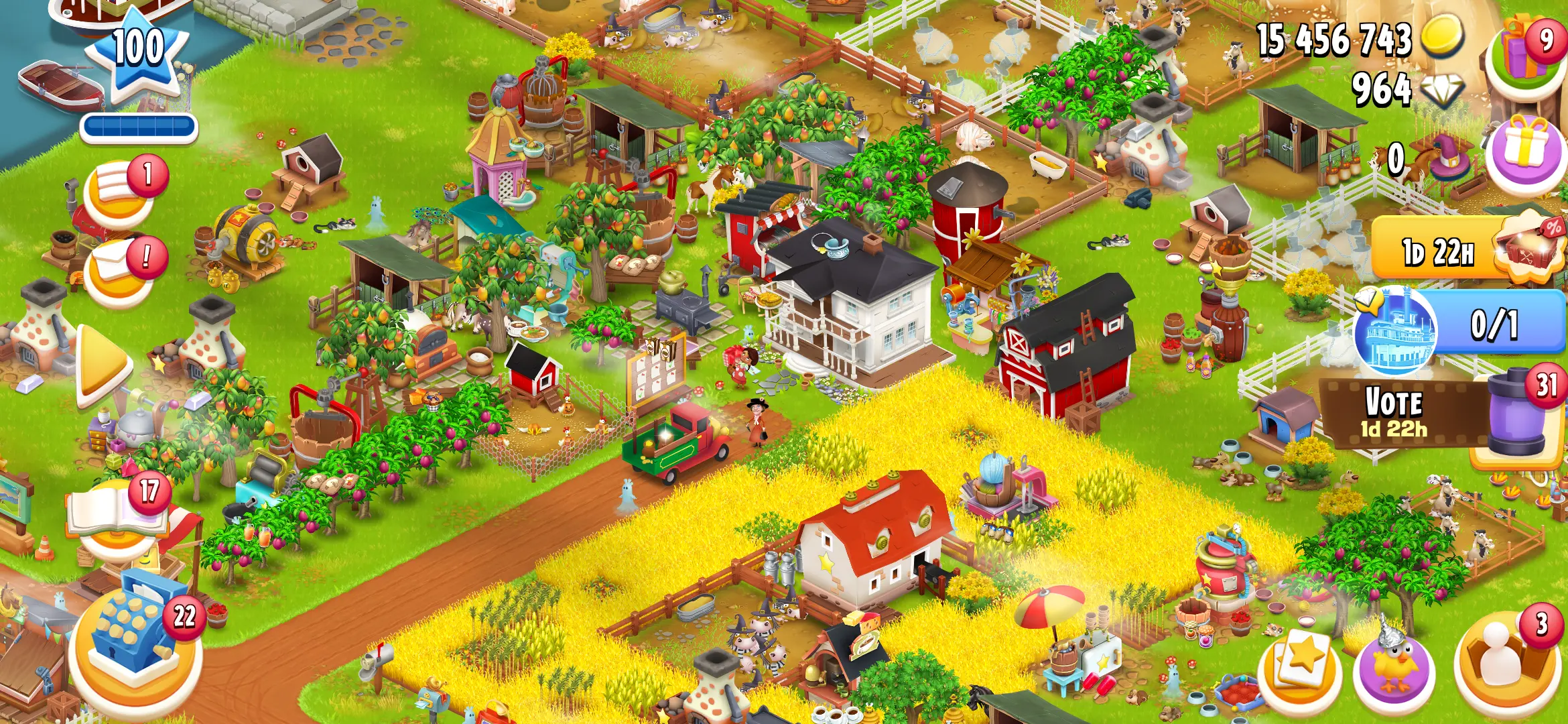 LEVEL 100 🌾 9000 BARN & 3000 SILO FULLY FILLED BARN 🐮 15M+ COINS 💰 & 964 DIAMONDS 💎 LAND & BEM TOOLS INCLUDED 🧺 FULL ACCESS 🔑 INSTANT DELIVERY ⚡