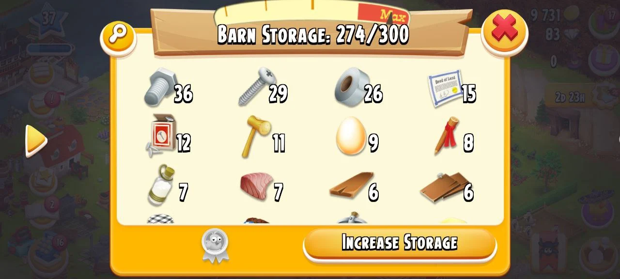 🔥✨Top Notch Hay Day Farm✨🔥 LVL 37 🌾 274/300 BARN 🛖 300/325 SILO 🌾 9.7K COINS 💰 TH1 REP4 🌟 150% LAND UNLOCK 🌍
