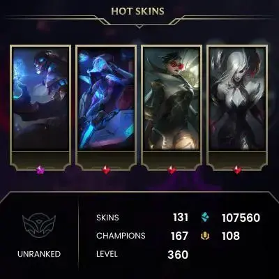 EUW | 127 Skins | 167 Champions 360 Level ZAK666