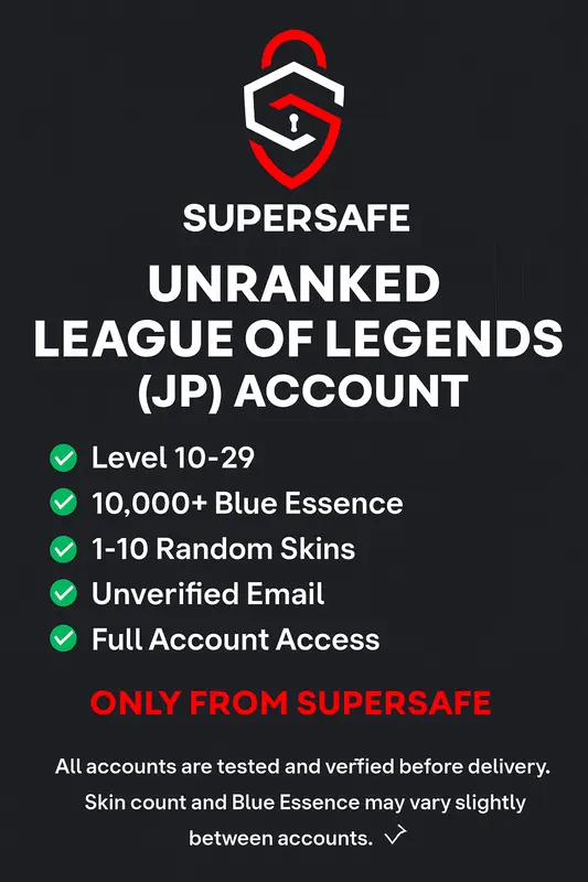League of Legends (LoL) JP Smurf Account | Instant Delivery | Japan Server | Unranked | Level 10–29 | 10,000+ Blue Essence (BE) | 1–10 Skins | Unverified Email | Full Access | #LOLJP3254