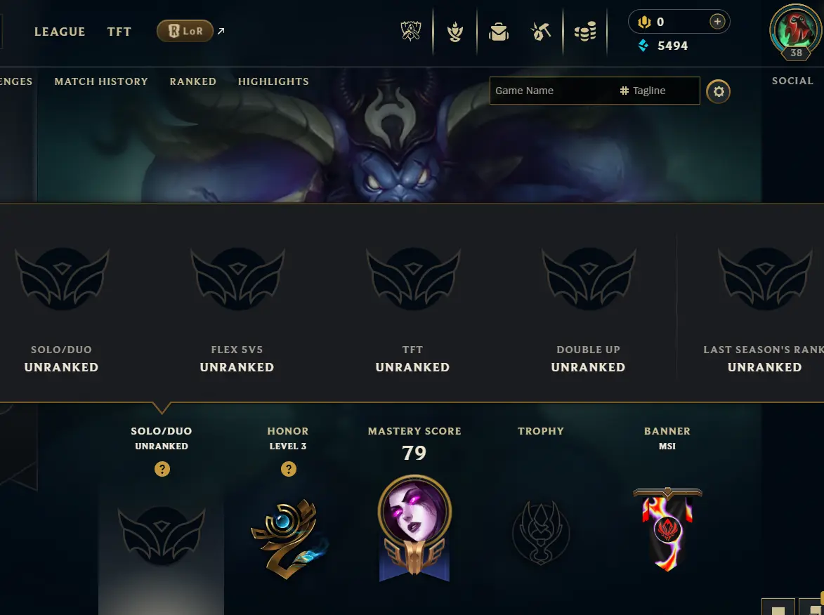 【NA】🌍-LEVEL 38✔- 18 SKIN 💎UNRANKED🔥[5.4K BE, 0RP]✨ 43 CHAMP✅️FULL ACCESS-Mail Changeable-🔥INSTANT DELIVERY🔥