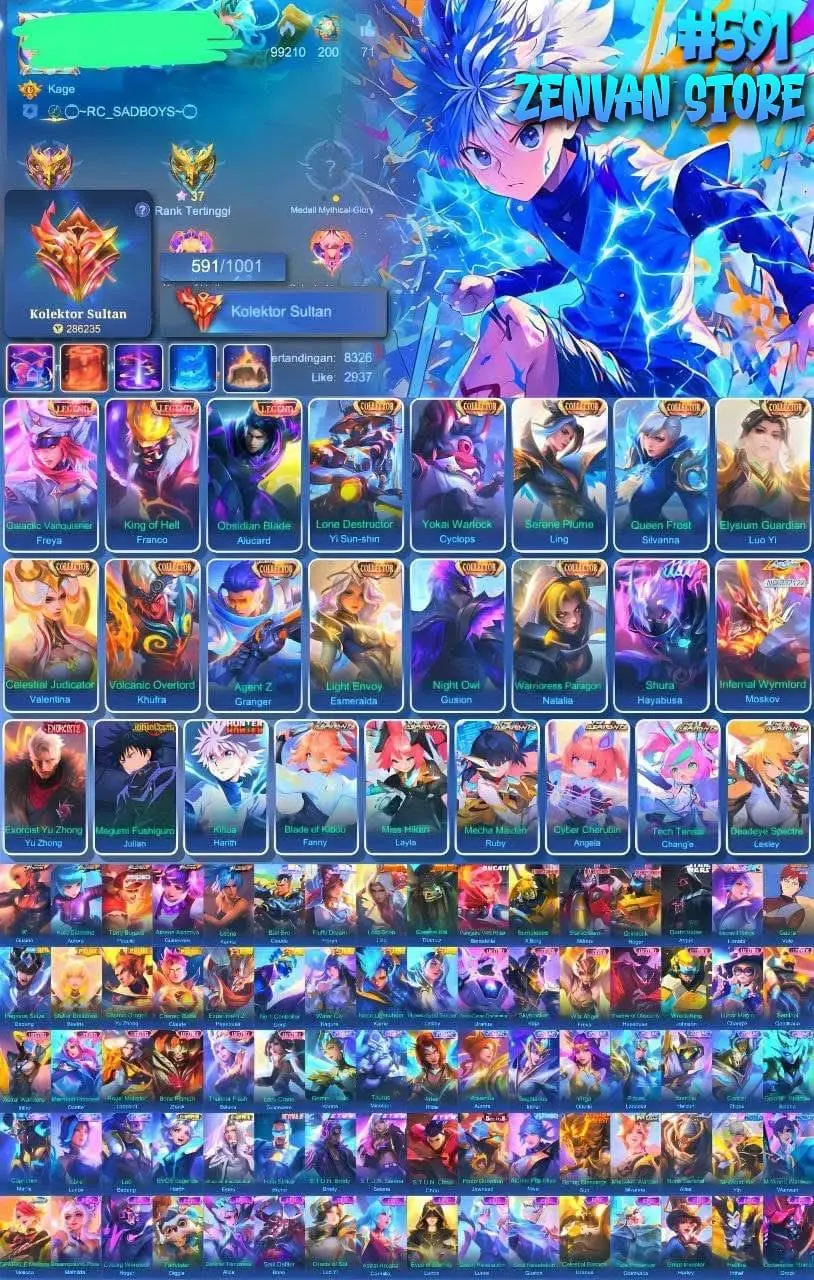 #591 🔥 591 Skins 🔥 Legends Franco, Alucard & Freya 🔥 Collector Yin Sun Shin, Ling, Silvana, Cyclops, Lou Yi, Valentina, Kufra, Granger, Esmeralda, Gusion & Natalia 🔥 11.11 Hayabusa 🔥 Many Limited 🔥 Many Zodiak 🔥 Many Epic 🔥 Safe Account ✅
