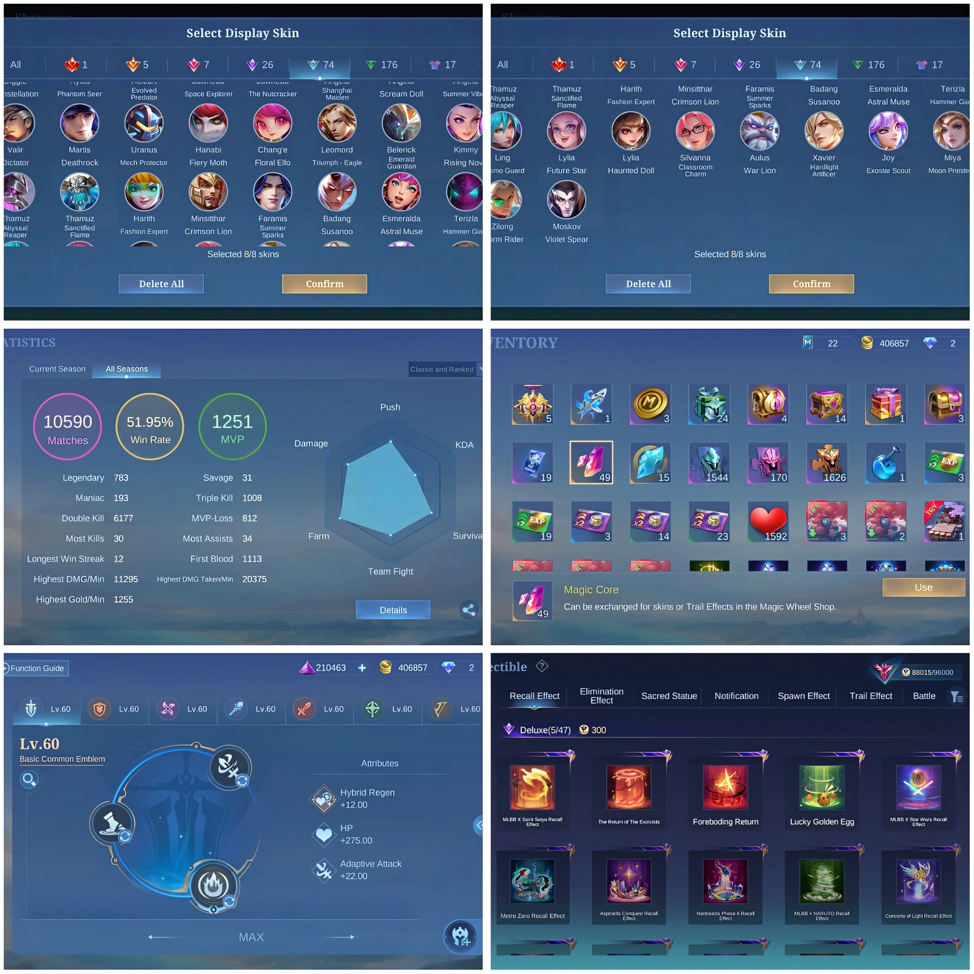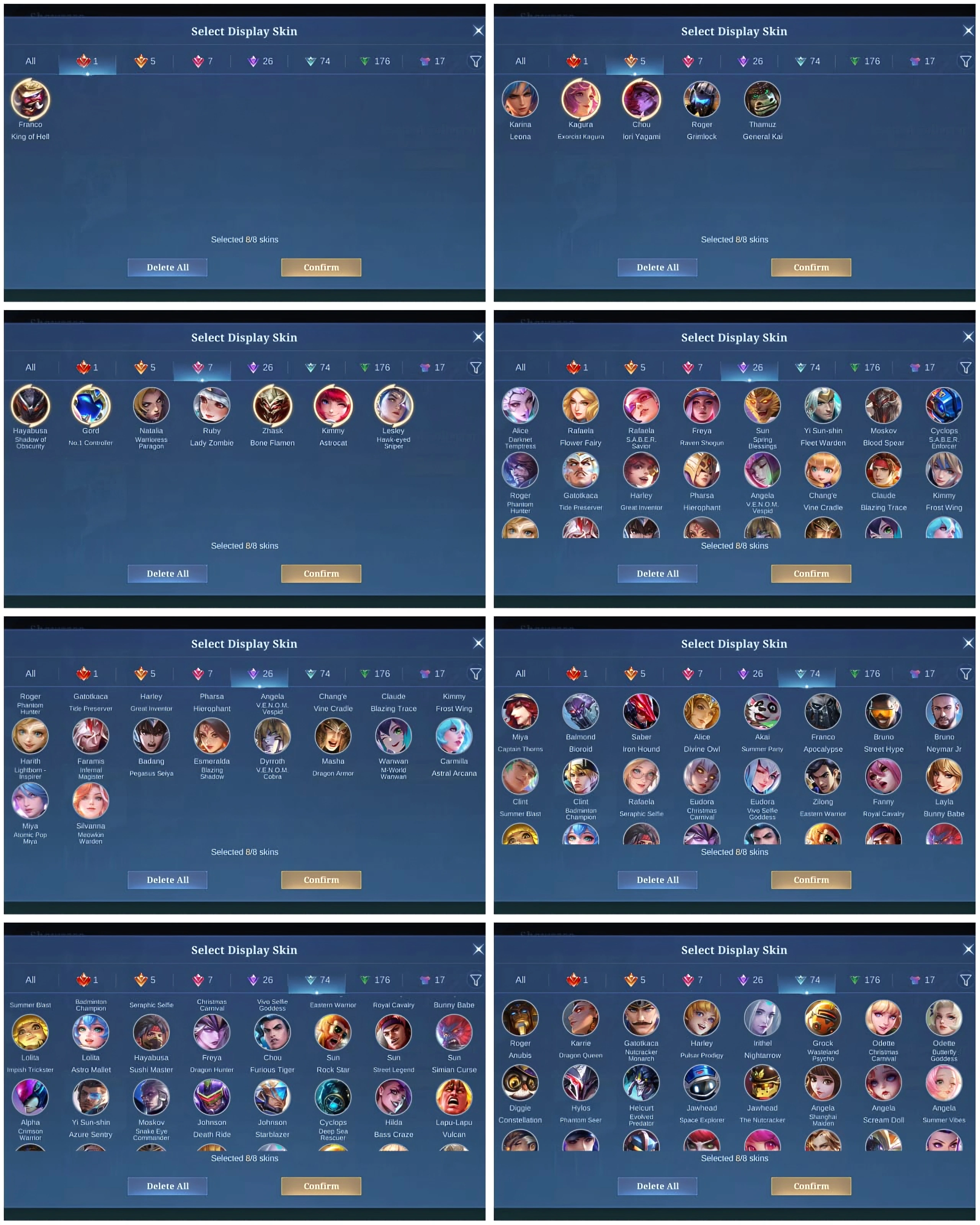 [IOS/ANDROID] CEL LVL 111 | 130 HEROES | 306 SKINS | EXALTED 5 | FRANCO LEGEND ⸱ KAGURA EXORCIST ⸱ CHOU KOF ⸱ 2 ANNUAL LESLEY GORD ⸱ 4 LUCKYBOX