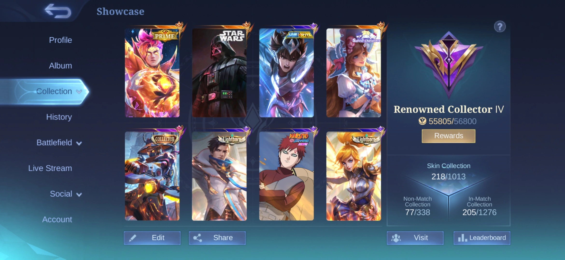 MB837|LV85|HERO 126|SKIN 218|RENOWNED COLLECTOR 4|ARGUS STAR WARS|CLAUDE PRIME|FLORYN SANRIO|YI SUN SHIN COLLECTOR|CC NATA|11 EPIC|BADANG SEIYA|VALE GAARA|2 MEOWKIN
