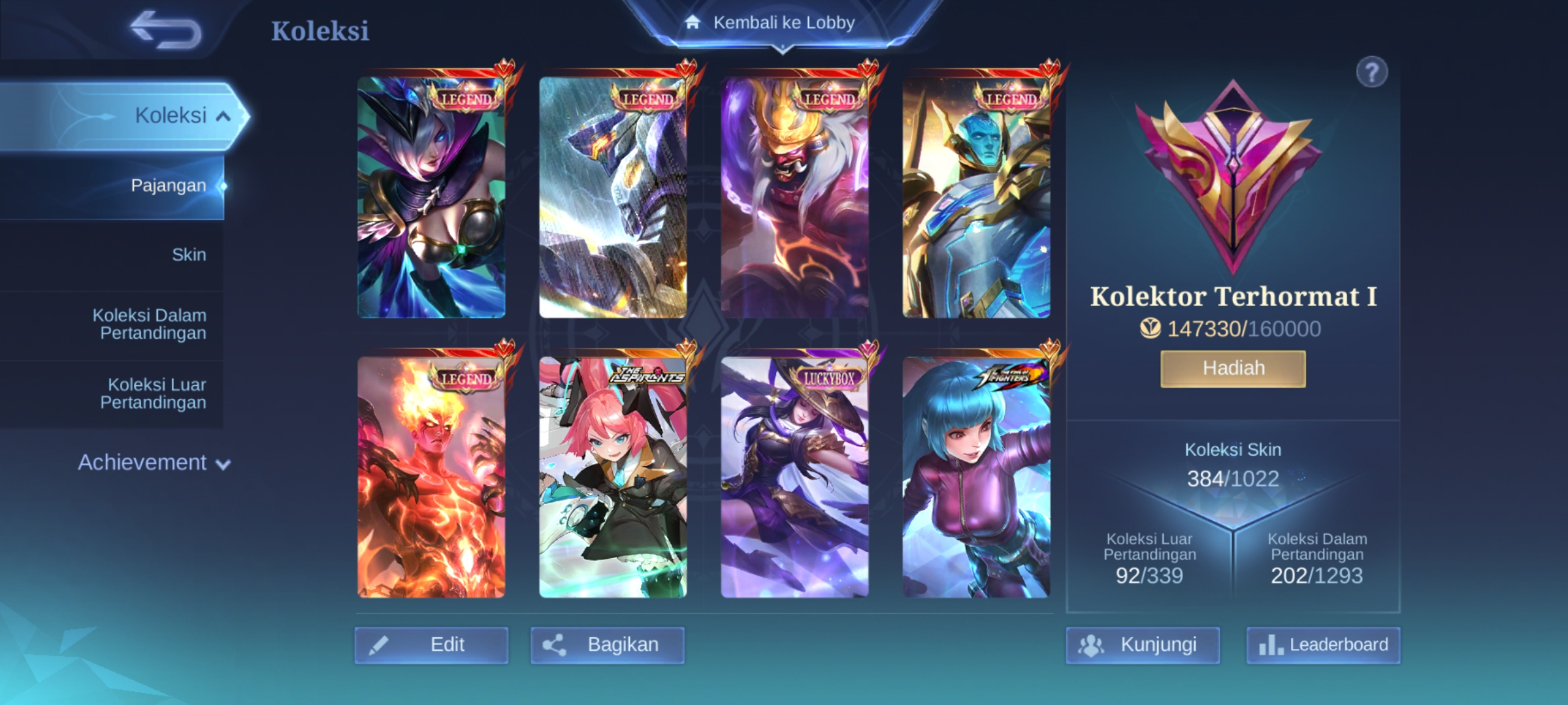 ML-12 Skins 384 [ 5 Legend ] Aspirants Layla / 2 KOF Aurora / Transformers Roger / Prime Beatrix / Collector Alpha / 20 Luc