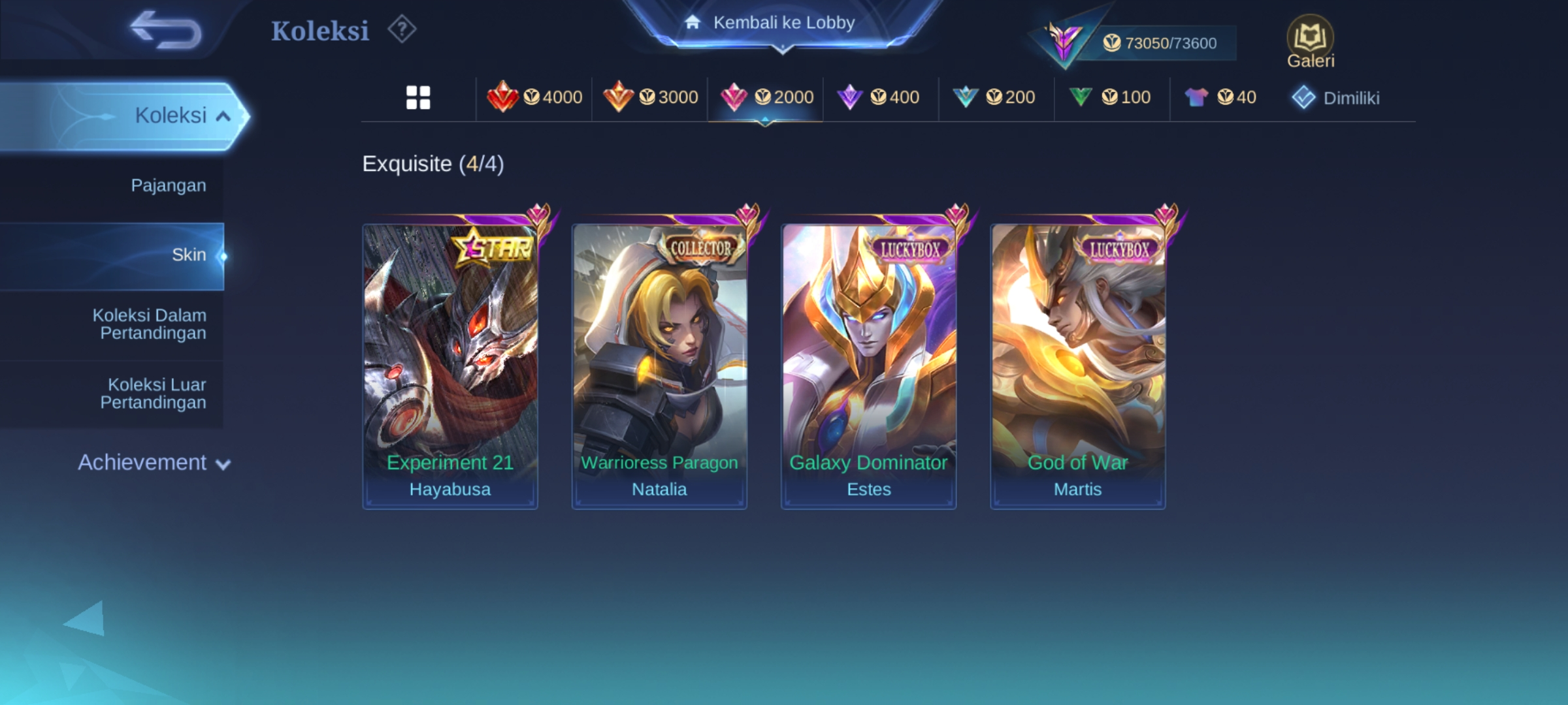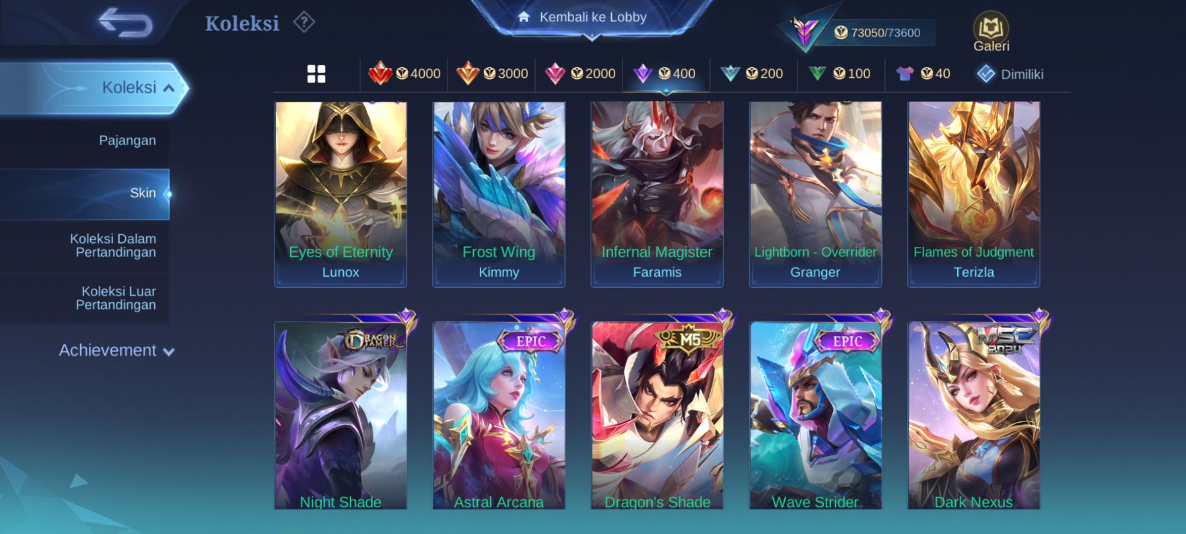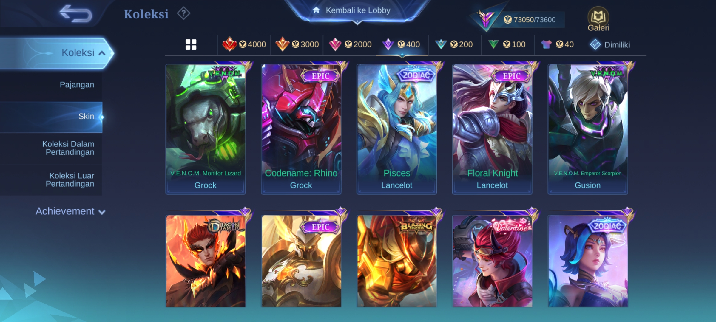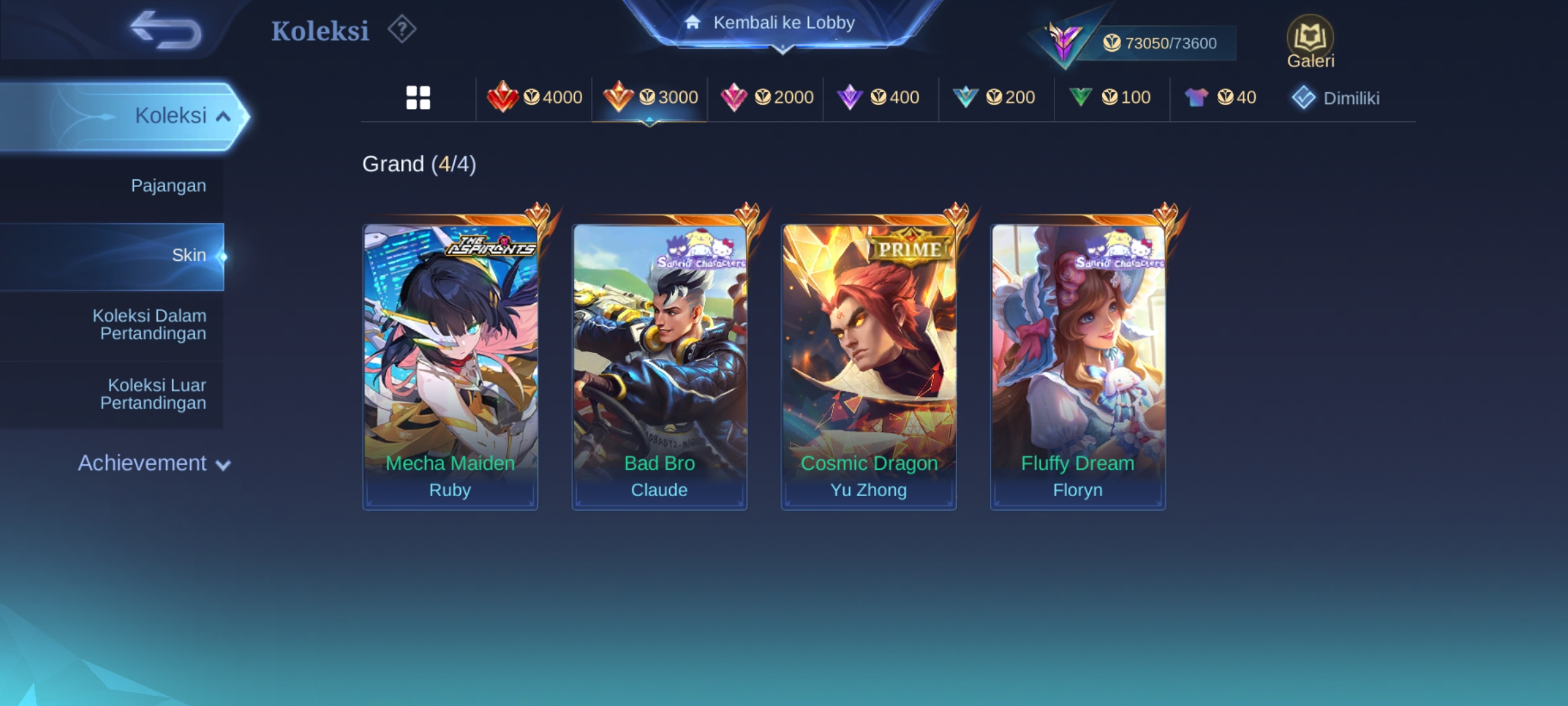 ML-74 Skins 242 [ Legend Lunox ] Aspirants Ruby / 2 Sanrio Claude x Floryn / Hayabusa Anual star / 3 Zodiac / 2 Luckybox