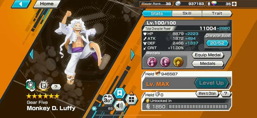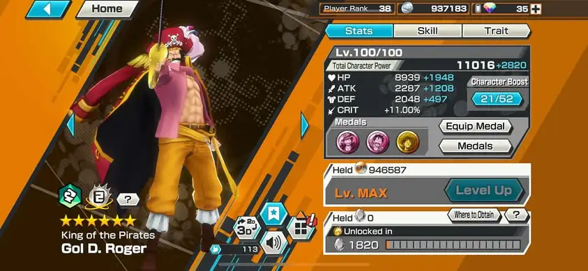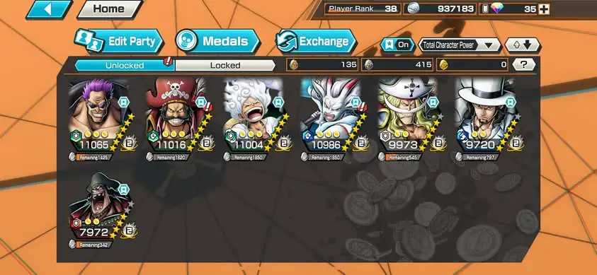 [3353][IOS+ANDROID] 7 EX / 4 MAX / Lucci + Roger + Yamato + Zephyr + Luffy G5 + Whitebeard + Blackbeard, Support 159% Good Medal, HB 12