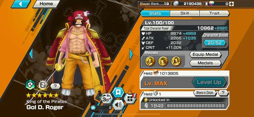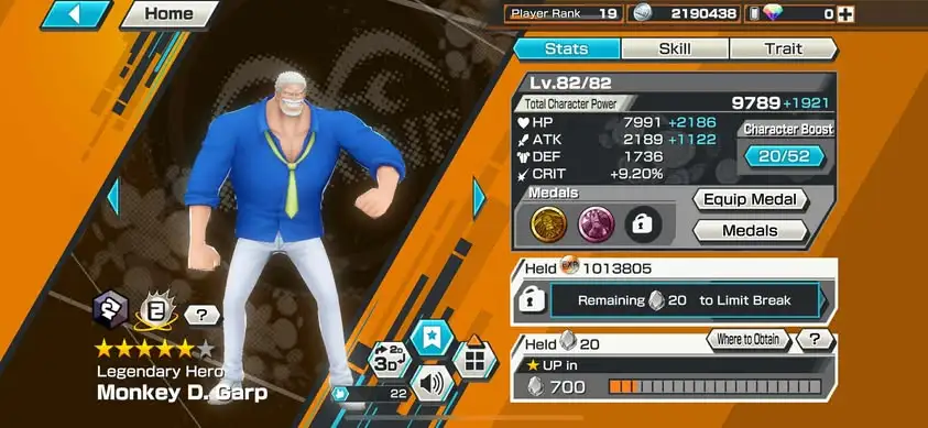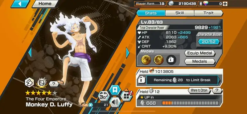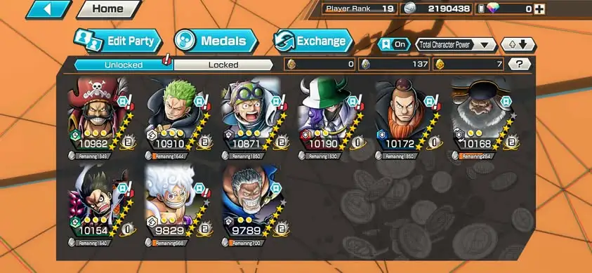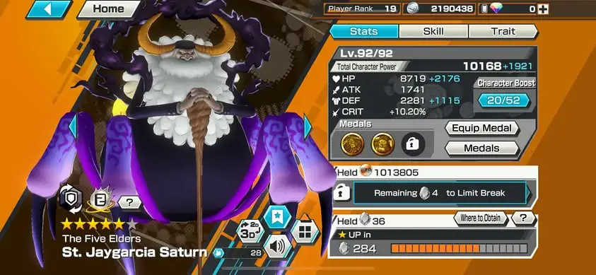 [3412][IOS+ANDROID] 4 EX META / Garp + Saturn + Luffy Light + Roger , Support 144% , Good Medal