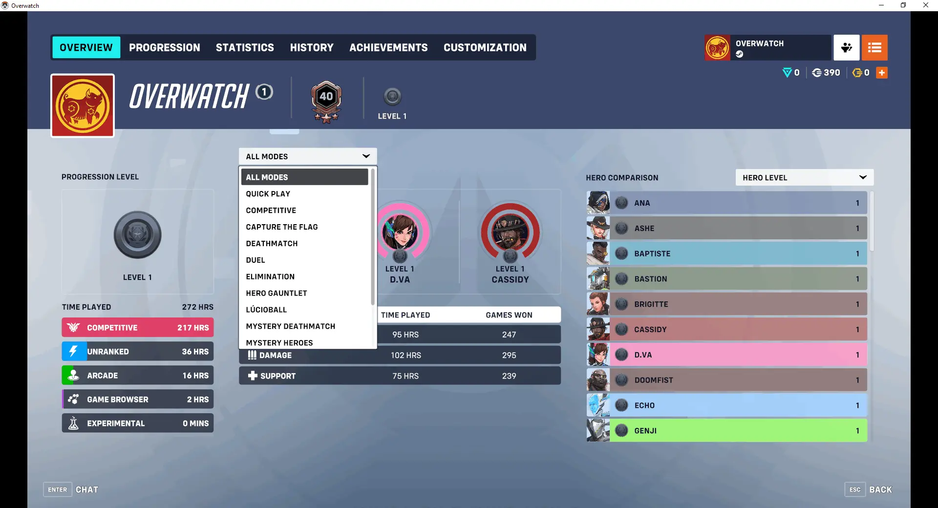 Steam Account + 203 SKINS + 4 Golden Weapon+WIDOWMAKER KERRIGAN + WIDOWMAKER TRICOLORE + LUCIO JAZZY + LUCIO ANDES + CASSIDY AMERICAN