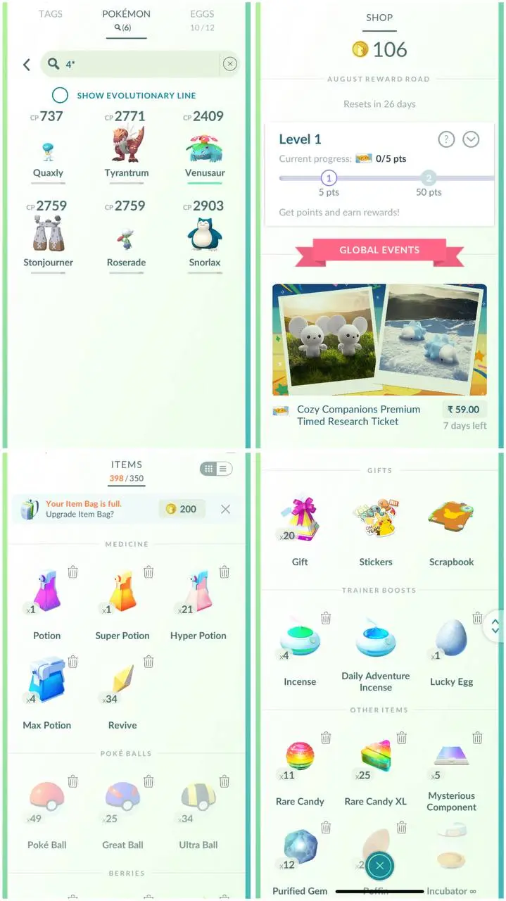 50% OFF🥶YEAR 2024🥶LEVEL 37🥶POKEMON 296🥶LEGENDARY 126🥶SHINNY 55🥶LEGENDARY+SHINNY 14🥶MYTHICAL 27🥶HOUNDO 6🥶POKECOINS 106🥶ITEMS 398🥶.