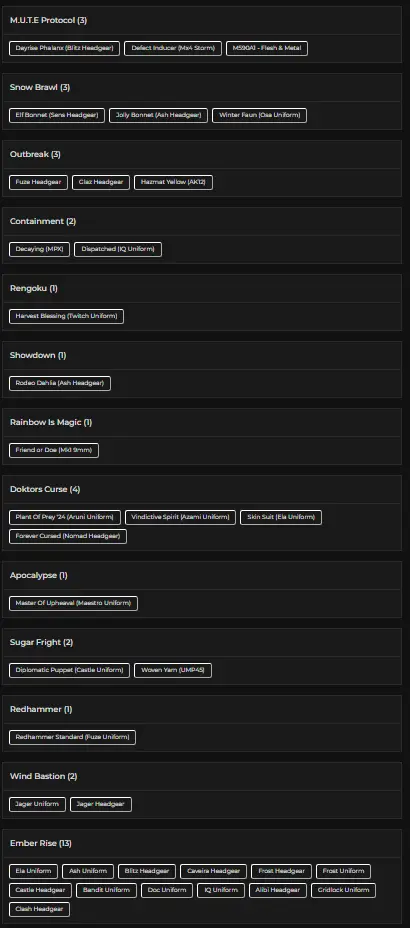 🖥️ PC | 🌟 Level 200 | ❄️ 42x Black Ices (MP5) | 🍂 17x Seasonals | 🎨 7x Universals | 🏎️ 2x Racer | 🧱 4x Dust Lines | 🏆 4x Pro Leagues (Old) | 💰 3,741 Renowns | 🔐 Full Access | 📈 Ranked Ready