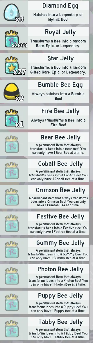 BSS 48 bees, 14lvl, demon and gummy mask, coconut boots, petal wand and belt, 1.7t total