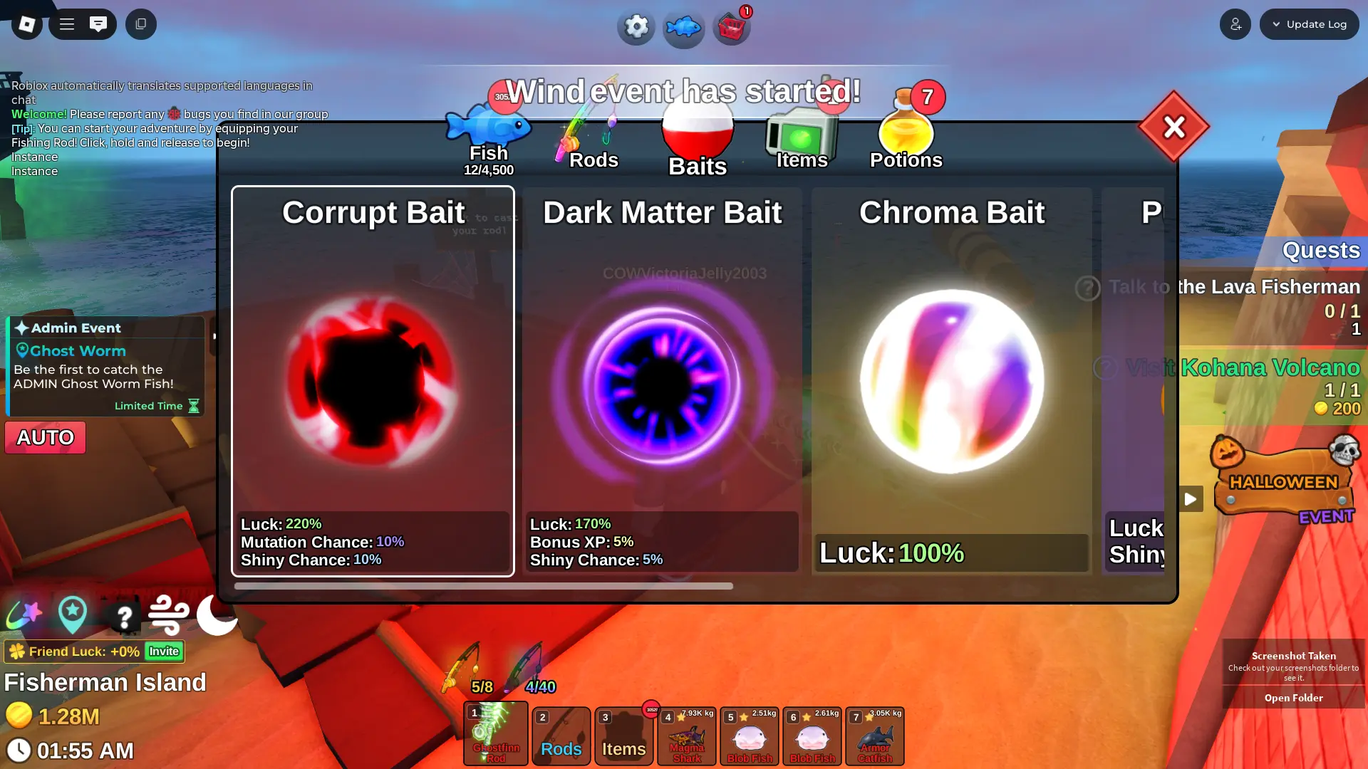 Fish it Account ❄️ Ghostfinn Rod ❄️ Dark Matter Bait ❄️ corrupt bait bait ❄️ secret + mythic Fish ❄️ 1/800k catch ❄️ 1.2m Coin ❄️ Skin Rods ❄️ Level 263