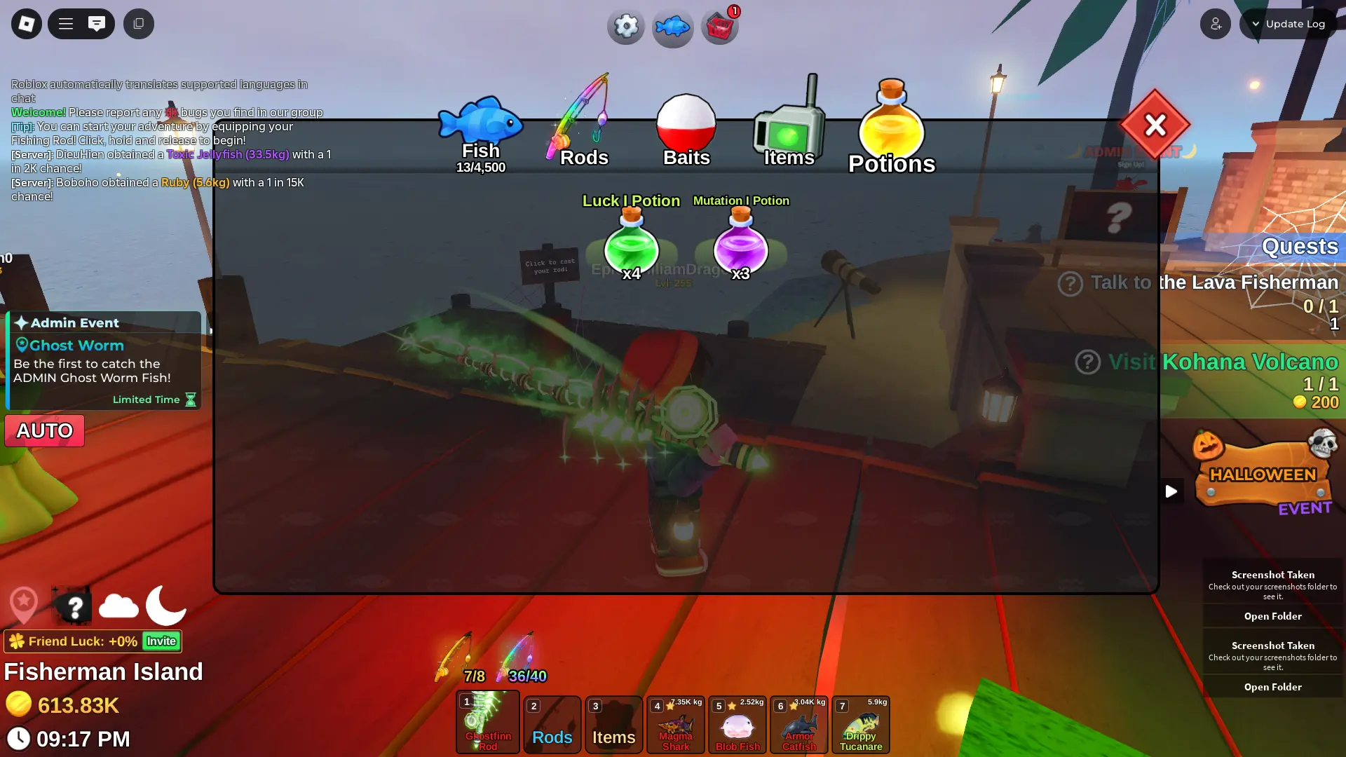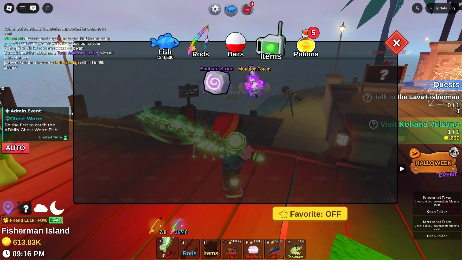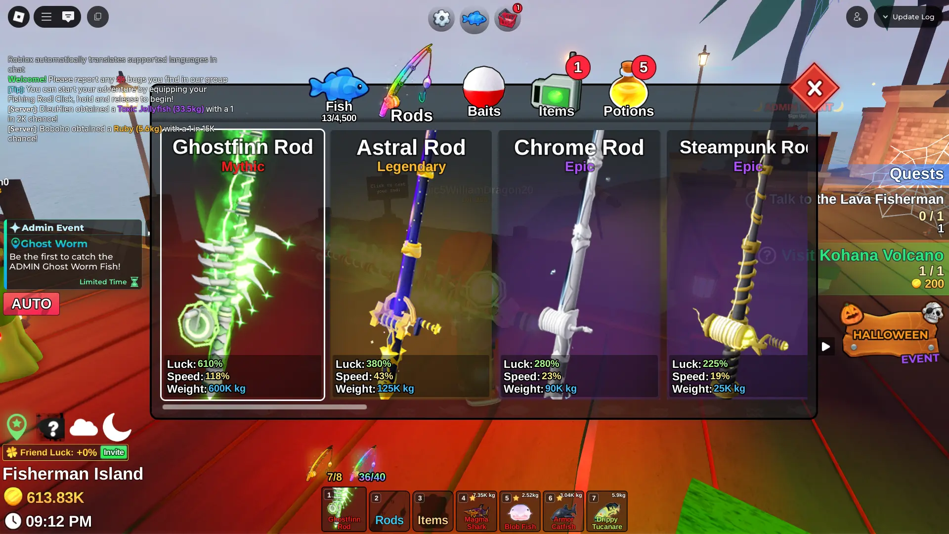 Fish it Account ❄️ Ghostfinn Rod ❄️ Dark Matter Bait ❄️ corrupt bait bait ❄️ secret + mythic Fish ❄️ 1/800k catch ❄️ 600k Coin ❄️ Skin Rods ❄️ Level 255