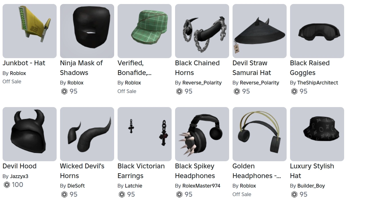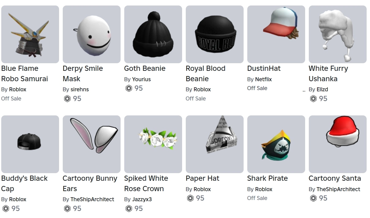 IK738 Cewe 2024 – 15+ Signature Hats: Crown of Robux Royalty, Silver Star Sigil, Hedge Witch’s Hat, Pink Flame, Y2K Ear Hoops, Raised Black Y2K Glasses, Bean Bag Buddy, Headphones