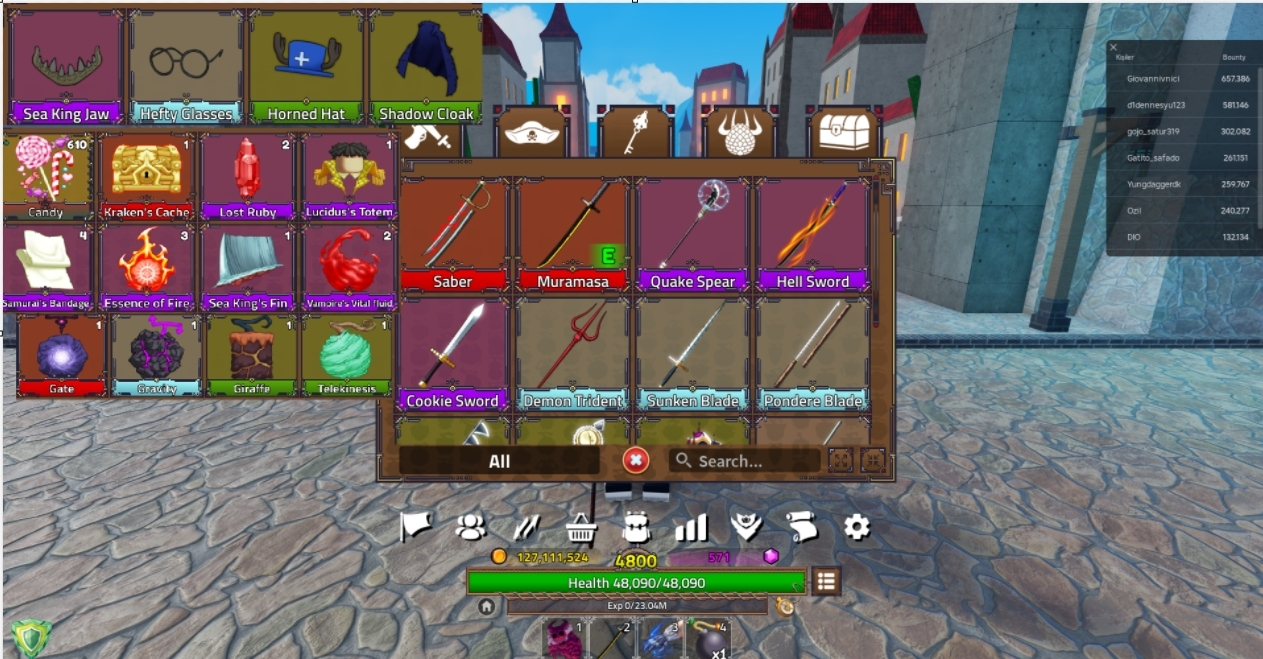 King Legacy ⸱ 4800 LV ⸱ Cyborg ⸱ Gate Inventory ⸱ Saber ⸱ Muramasa ⸱ 126m Peli ⸱ 571 Gems ⸱ Unlinked