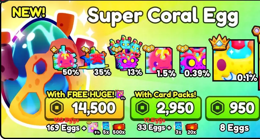 Pet Simulator 99 - Super Coral Egg x169 + Tickets x500 + Ghostly Pack x5【14500R】