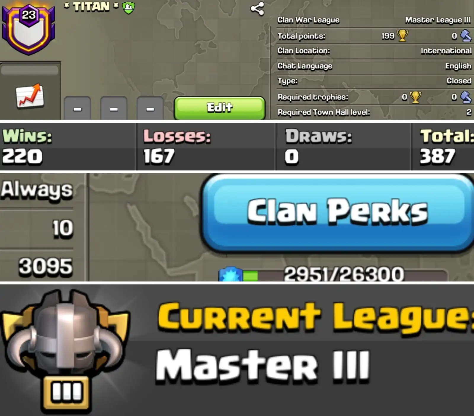 Super Rare Name - TITAN | Lvl 23 | Clan Capital 10 | CWL : Master 3 | War Log { 220 : 167 } | Instant Delivery unless sleeping