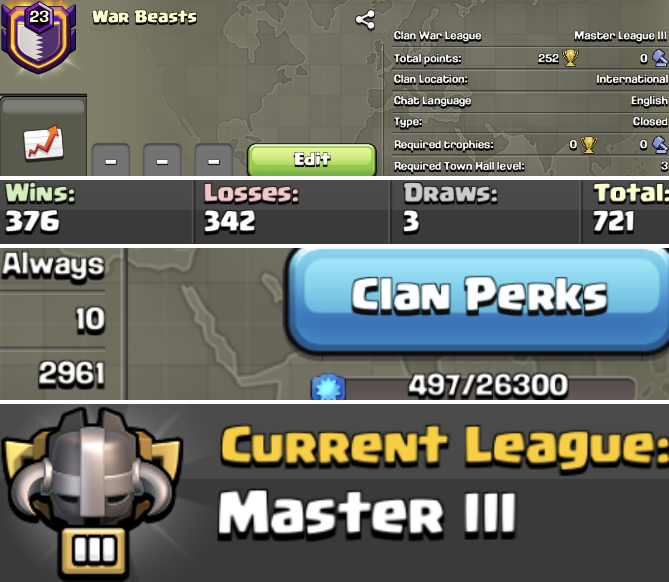 War Beasts | Lvl 23 | CWL - Master 3 | Clan Capital 10 | War Log { 376 : 342 } | Instant Delivery unless sleeping