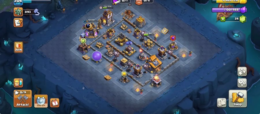 TH17 ⚔️ 3 Heroes Max 🛡️ High Lab 🔥 Max Def 💯 14 Epics 7@20 ✨ 206 XP 🌟 1044 War Stars
