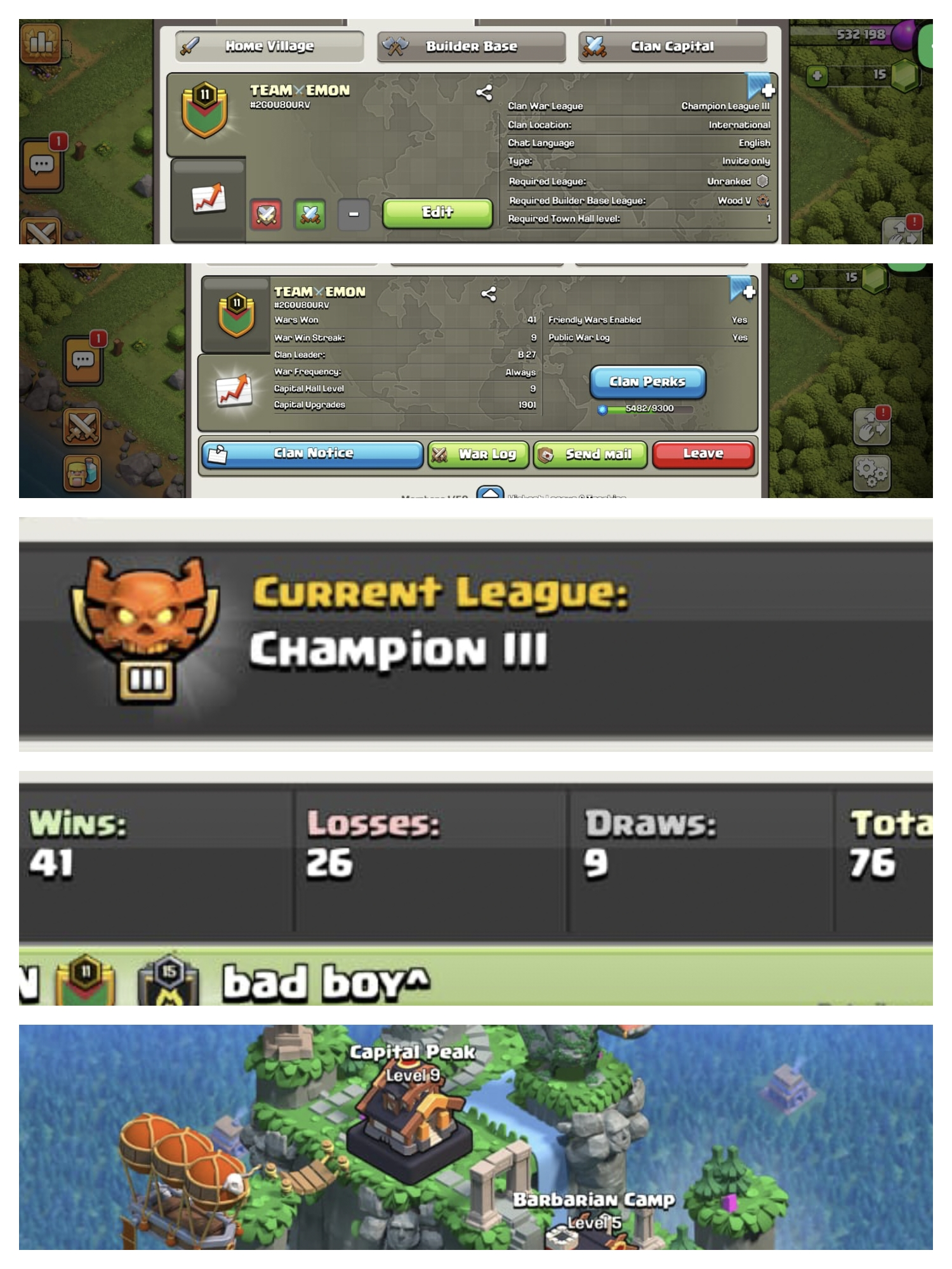 ➤CLAN LEVEL 11 ➤ CHAMPION LEAGUE 3 ➤NAME: TEAM EMON ➤ RARE ENGLISH NAME ➤ CLAN CAPITAL 9 || WIN- 41 | LOSS- 26➤LOW PRICE