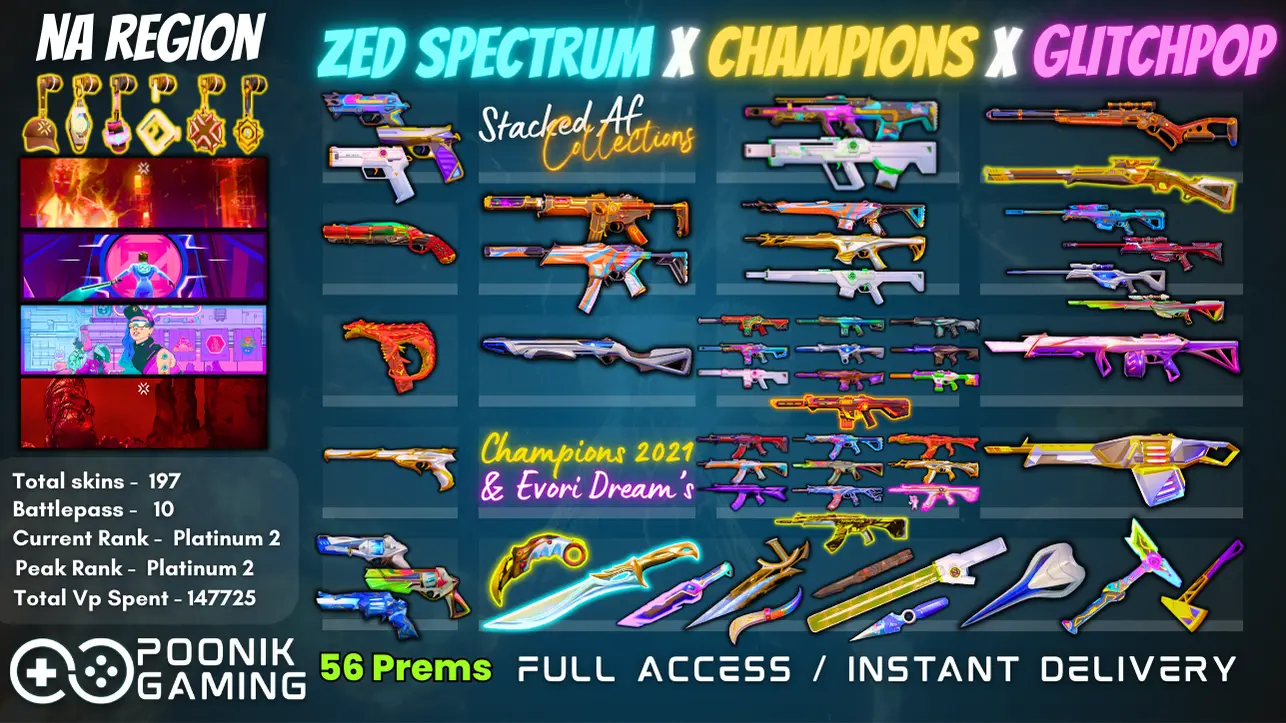 1500 US$ SPENT ⸱ NA REGION | CHAMPIONS 2021 BUNDLE, EVORI VANDAL, 10 BATTLEPASSES, 292 BUDDIES & MUCH MORE! [VNA245]