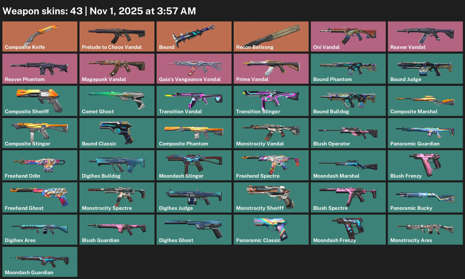 AP | 43 Skins | exp DIAMOND 1 | Recon Balisong | Prime Vandal | Reaver Vandal | Gaia's Vengeance Vandal | Oni Vandal | Prelude to Chaos Vandal | S4G