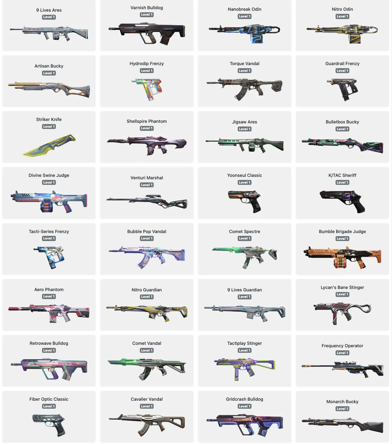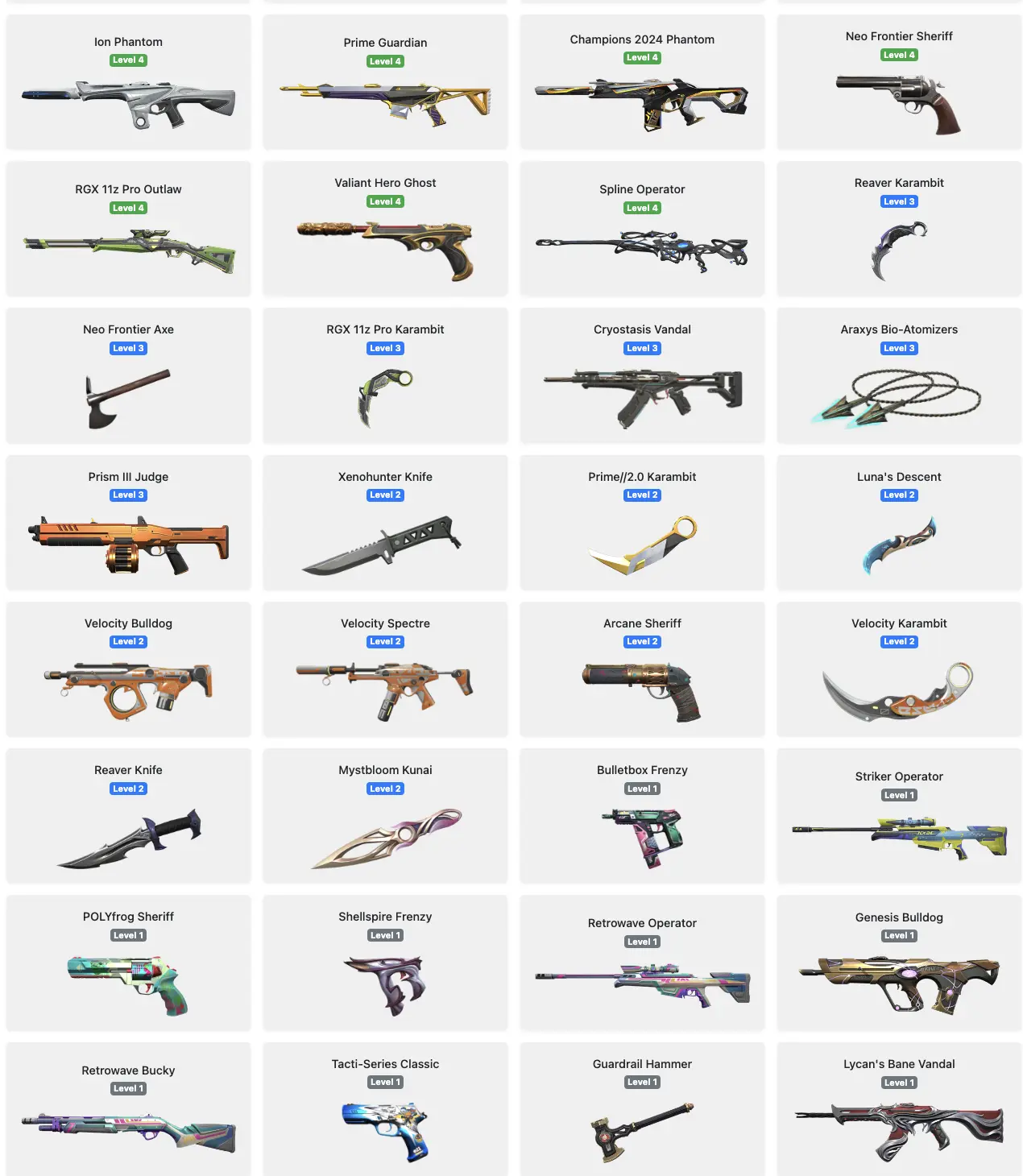 EU 208 Skins / Arcane Sheriff / Prime Bundle / Xenohunter Knife / RGX Blade ⸱ RGX Karambit / Araxys Bio ⸱ Atomizers / Reaver Karambit and KNife / Neo Axe / Mystbloom Kunai / Gaia ⸱ Araxys ⸱ Reaver ⸱ RGX ⸱ Ion ⸱ Cryostasis ⸱ Evori ⸱ Kuronami Vandal