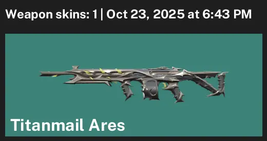 💥 EU 🫥 Unranked 🤘 1 Skins 525 VP 🤔 5 Agents 🕍 Value: 1275 VP 🕹 Titanmail Ares