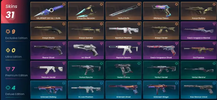 EU / Valorant / 31 Skins / ~ 33,875 VP Spent / Araxys Bundle + 2 Knives mssh895