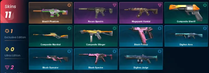 EU valorant / Magepunk Vandal / BlastX Phantom + lol 58 skins 124 characters Europe West 262 Level	lai521