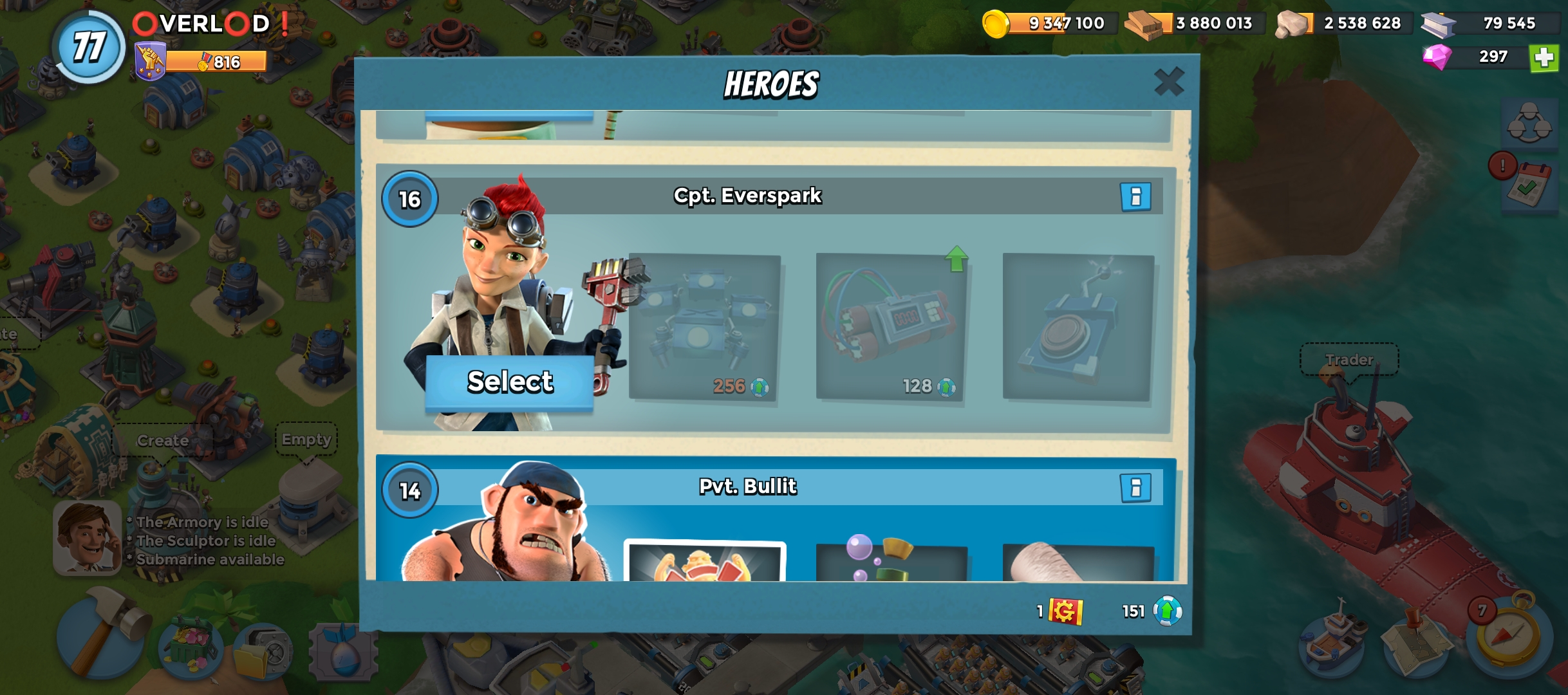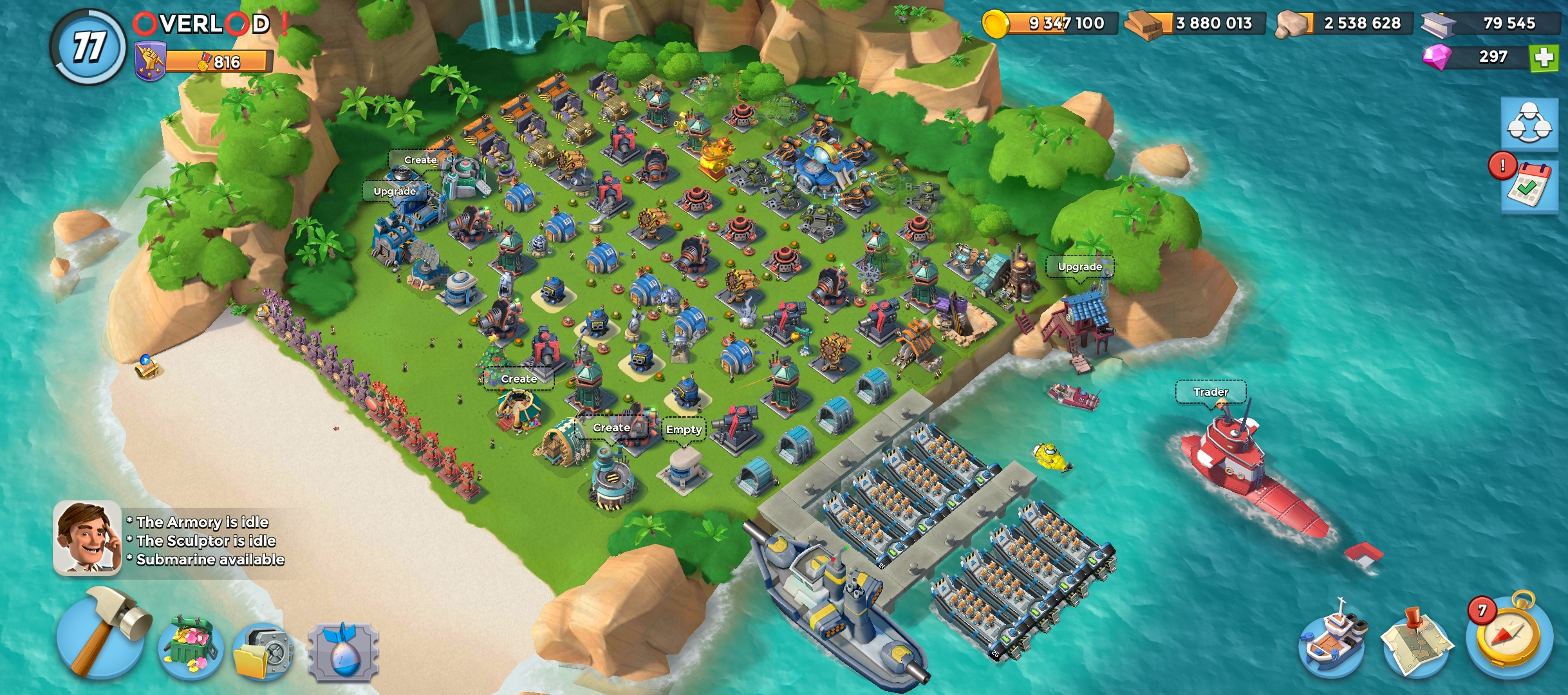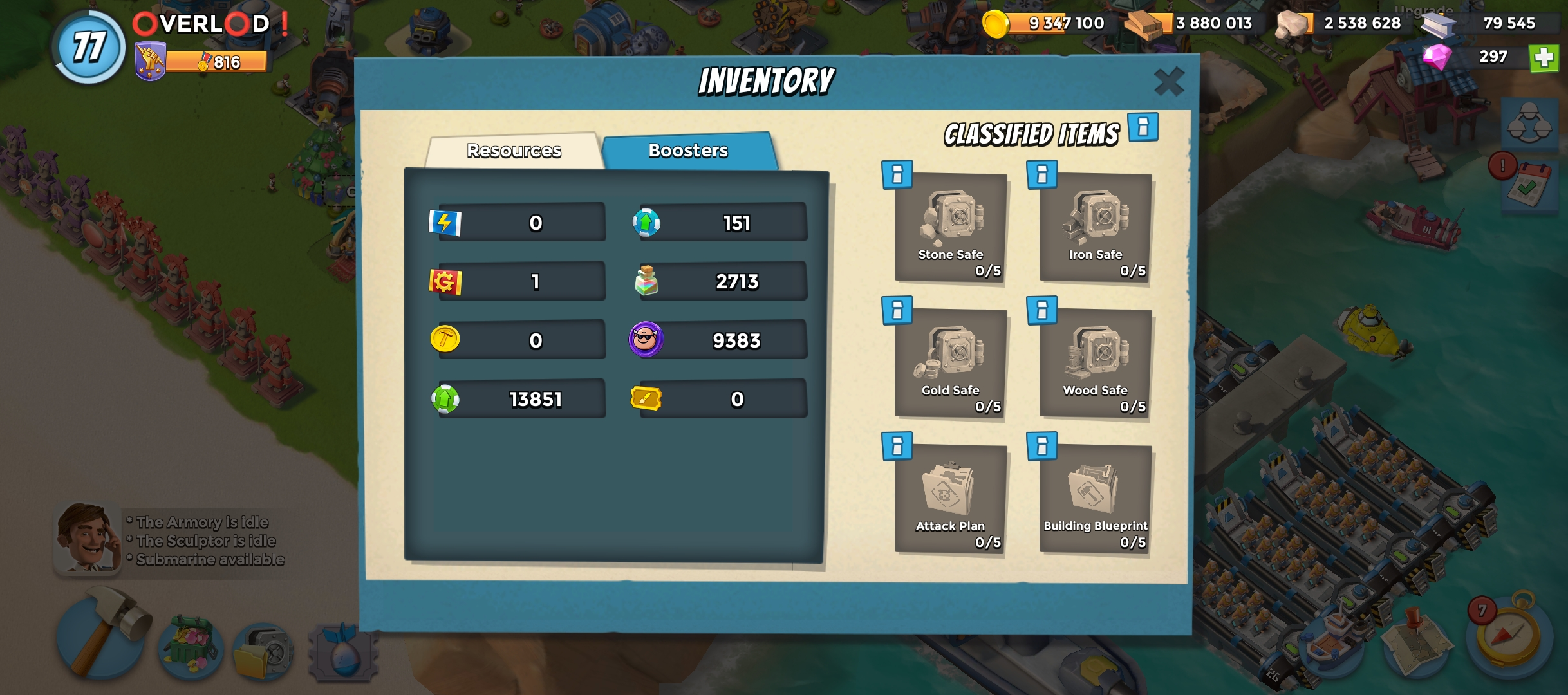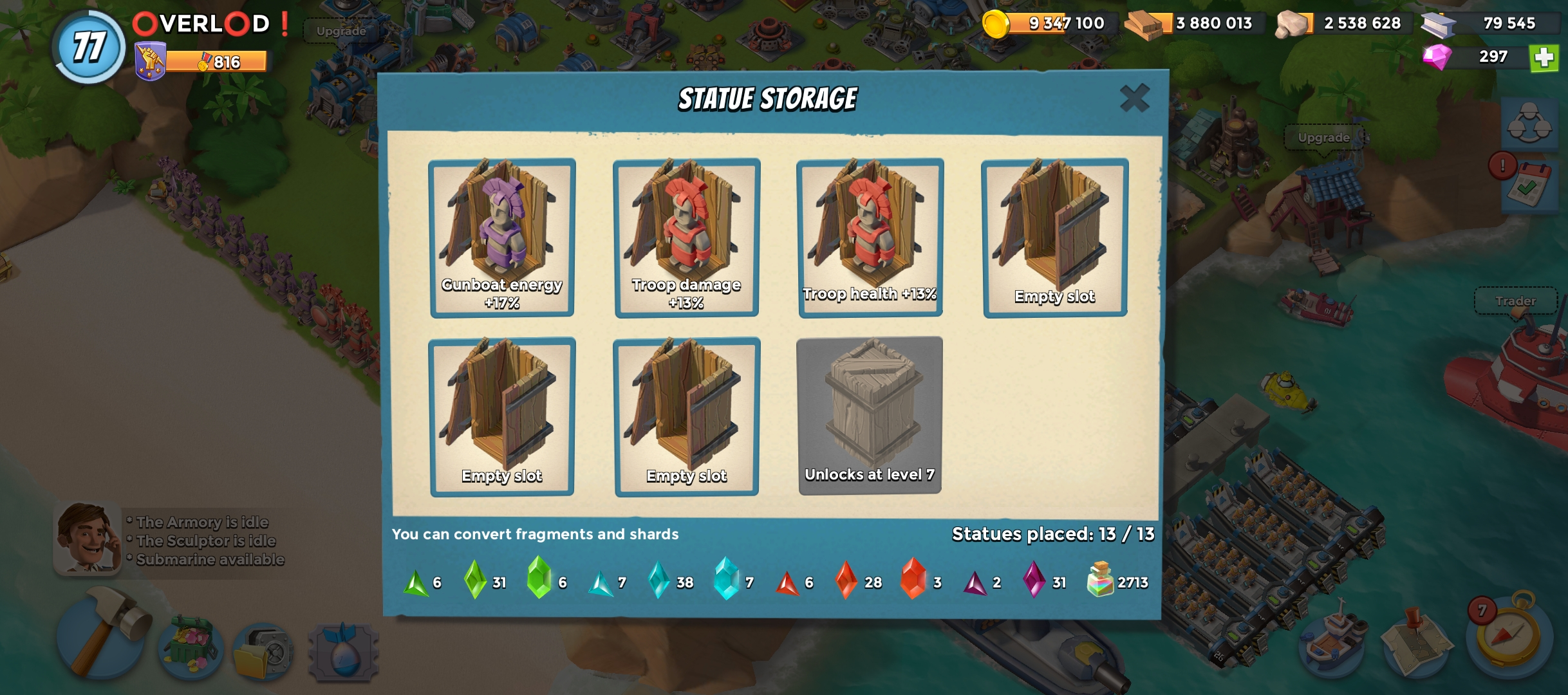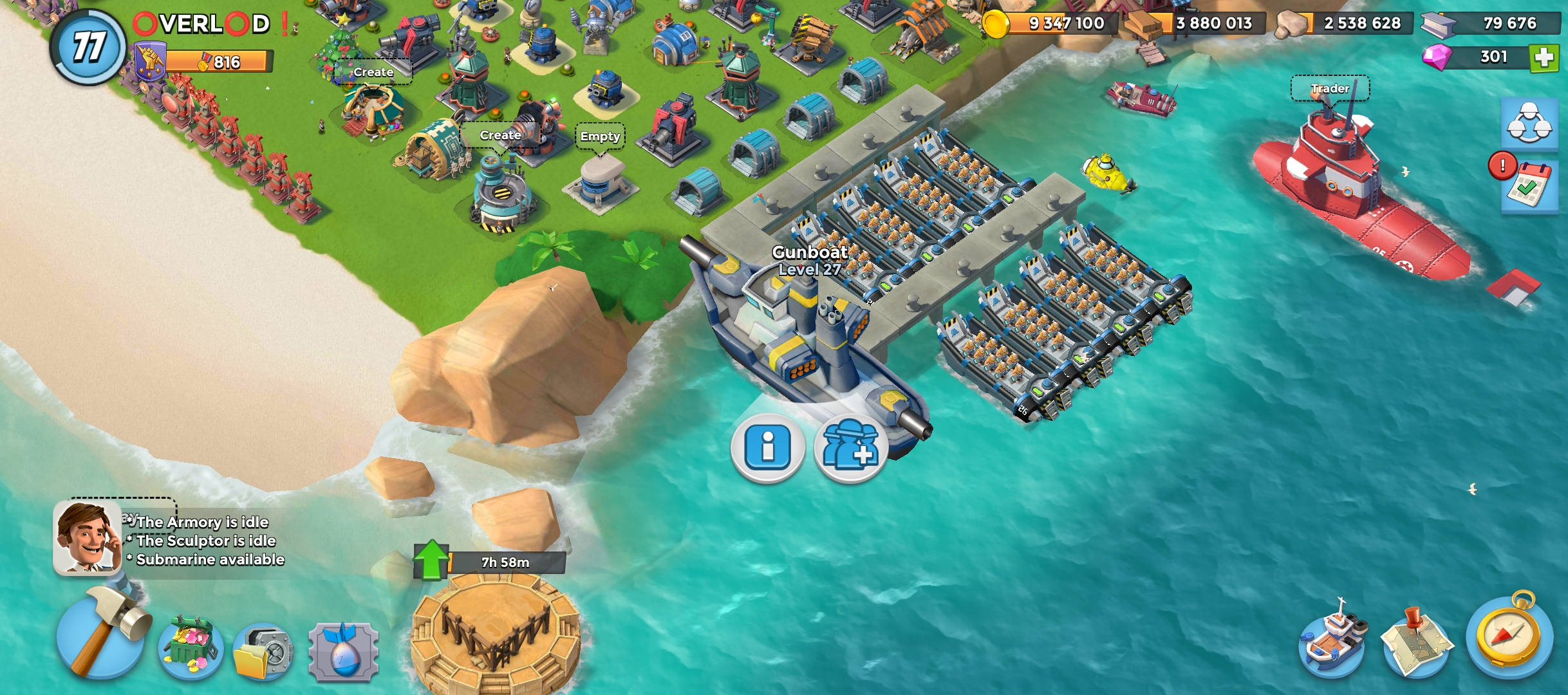 77 level 🏯Headquarters level 28 |🥇 VP 800 | ⛴️ Gunboat 27 | 📡 Radar level 20 | 💎Diamond 300 | Landing Craft 24 | Power Powder 2700 | Submarine Level 10 |