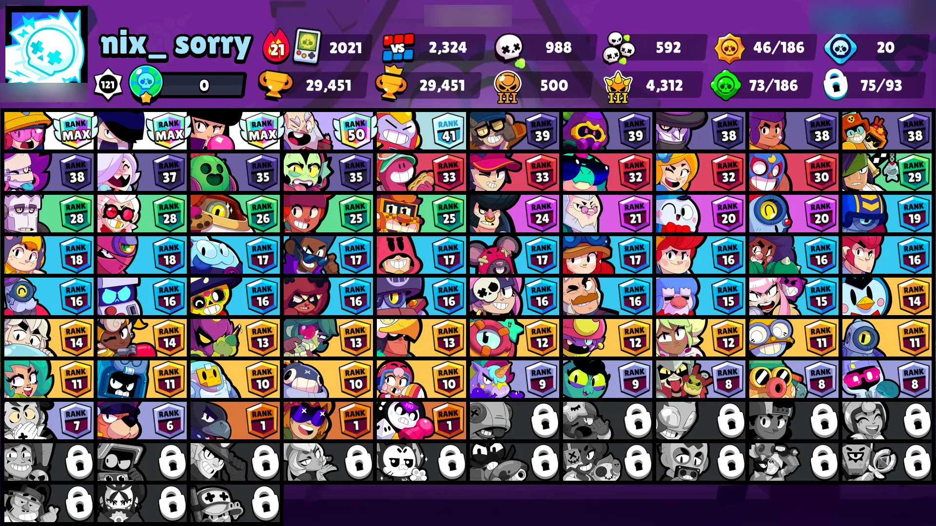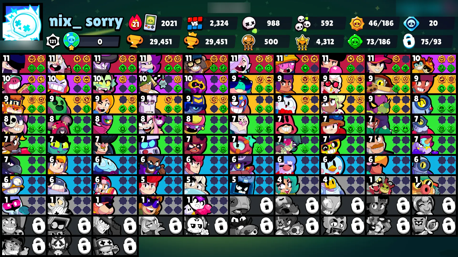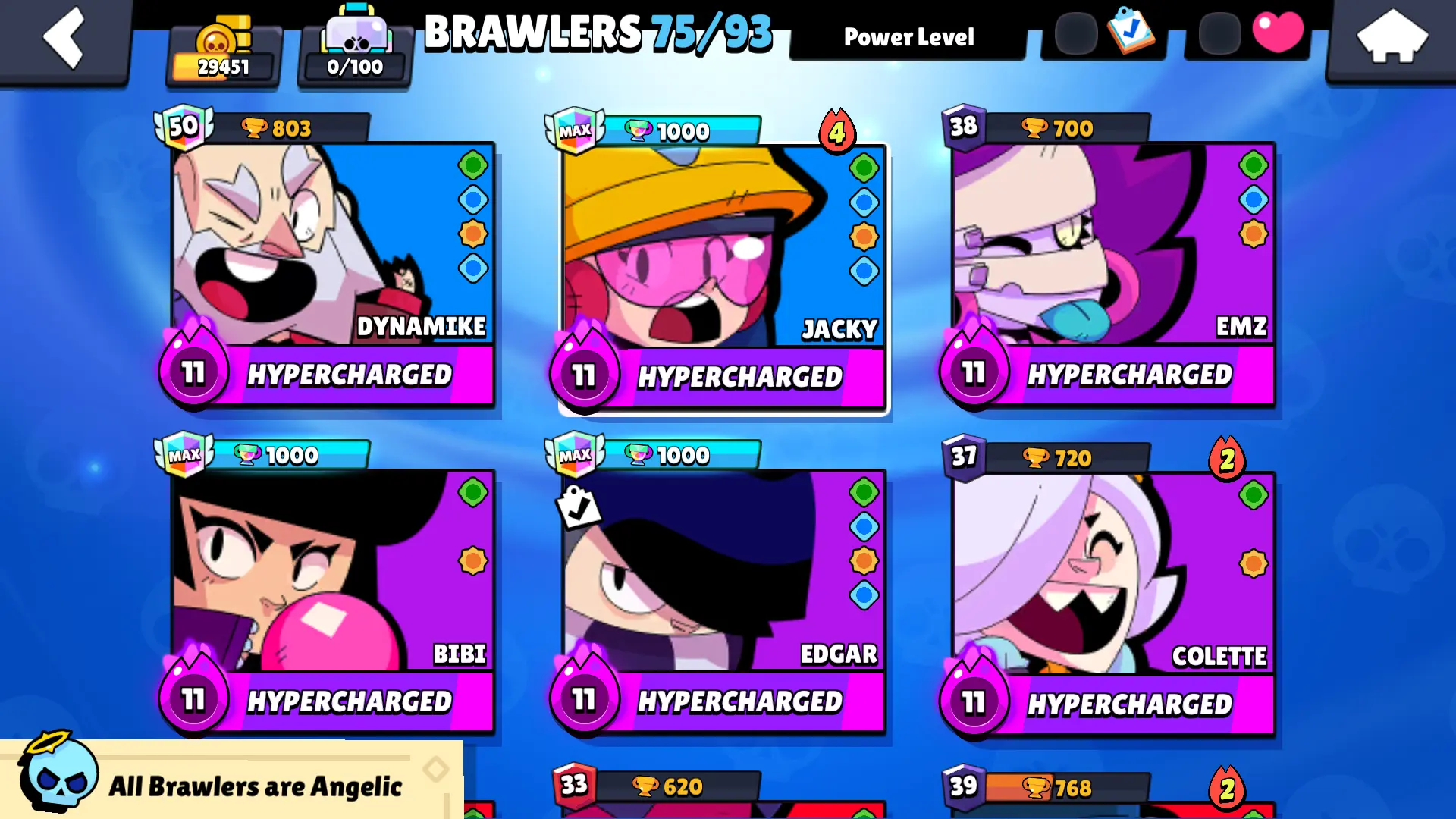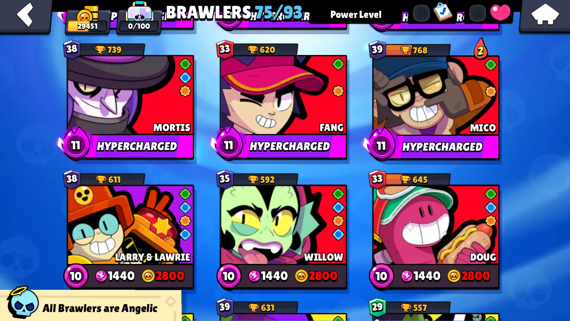 103 SKINS | 29451 TROPHIES | GODZILLA BUZZ | DARK LORD SPIKE | SURGE LIGHTYEAR | WARRIOR BO | SPIRIT KNIGHT FRANK | MOLDY MIKE | IVY BELLE | DARK CLOWN SAM | TECH MAISIE | GLITCH LARRY & LAWRIE | DARK HORSE BERRY | FANGUARD | DEMON WILLOW | 75 BRAWLERS