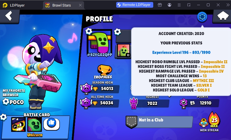 200 SKINS 💯 PIN 11.11 🧡 54.013 TROPHIES 🏆 92 BRAWLERS 🐼 26 HYPERCHARGED 🩸 47 MAX BRAWLERS 💛 ONI KENJI 🧡 VANARA FRANK 🧡 FILMMAKER BUZZ 🧡 REBEL LOLA 🧡 TRASH POCO 💯