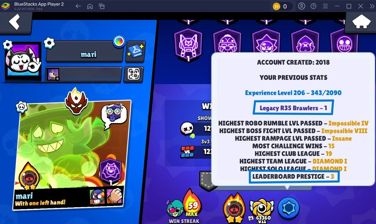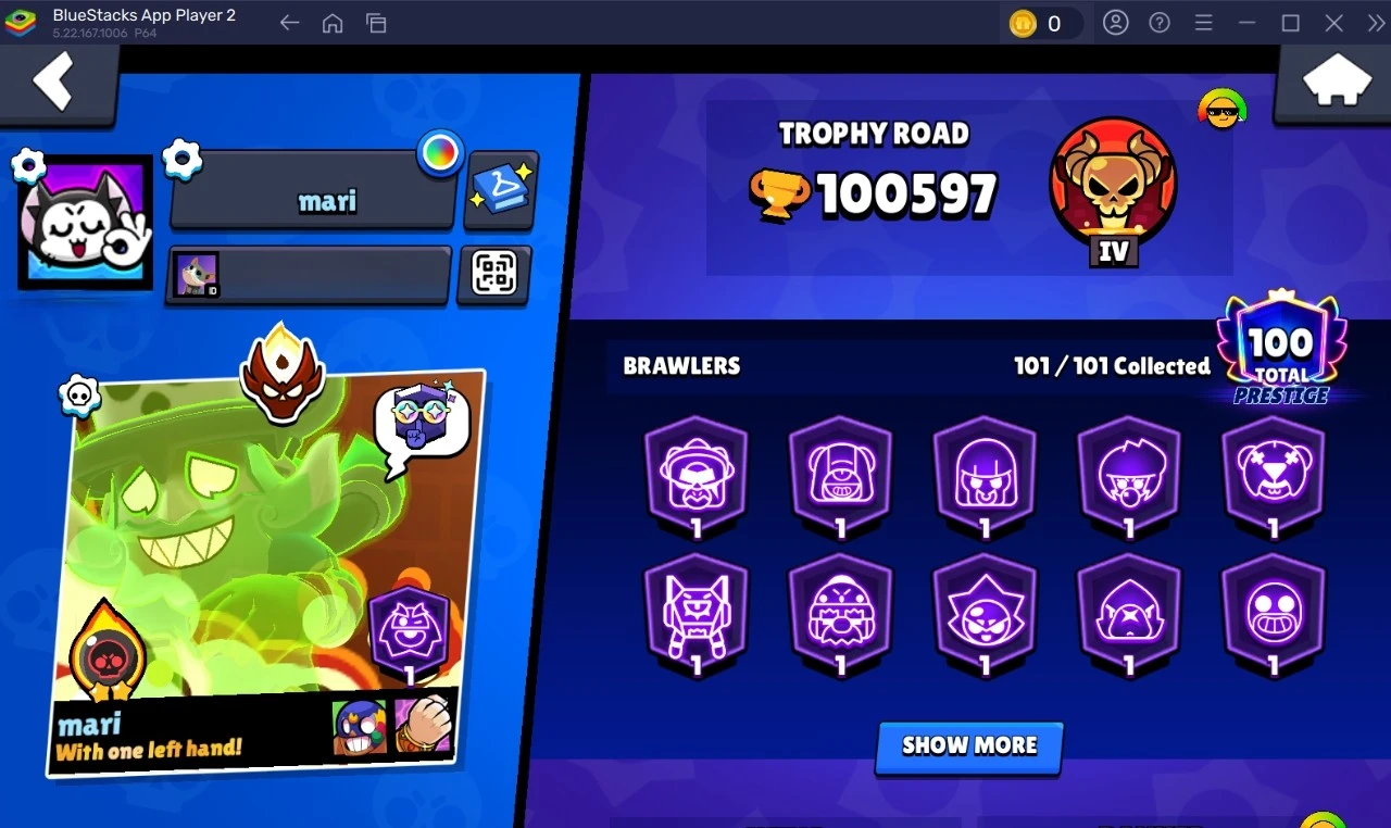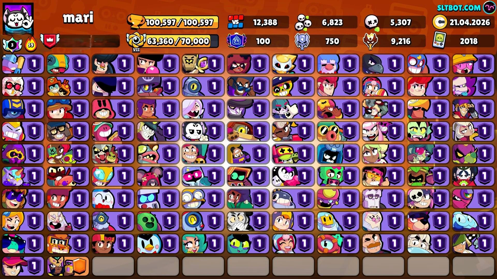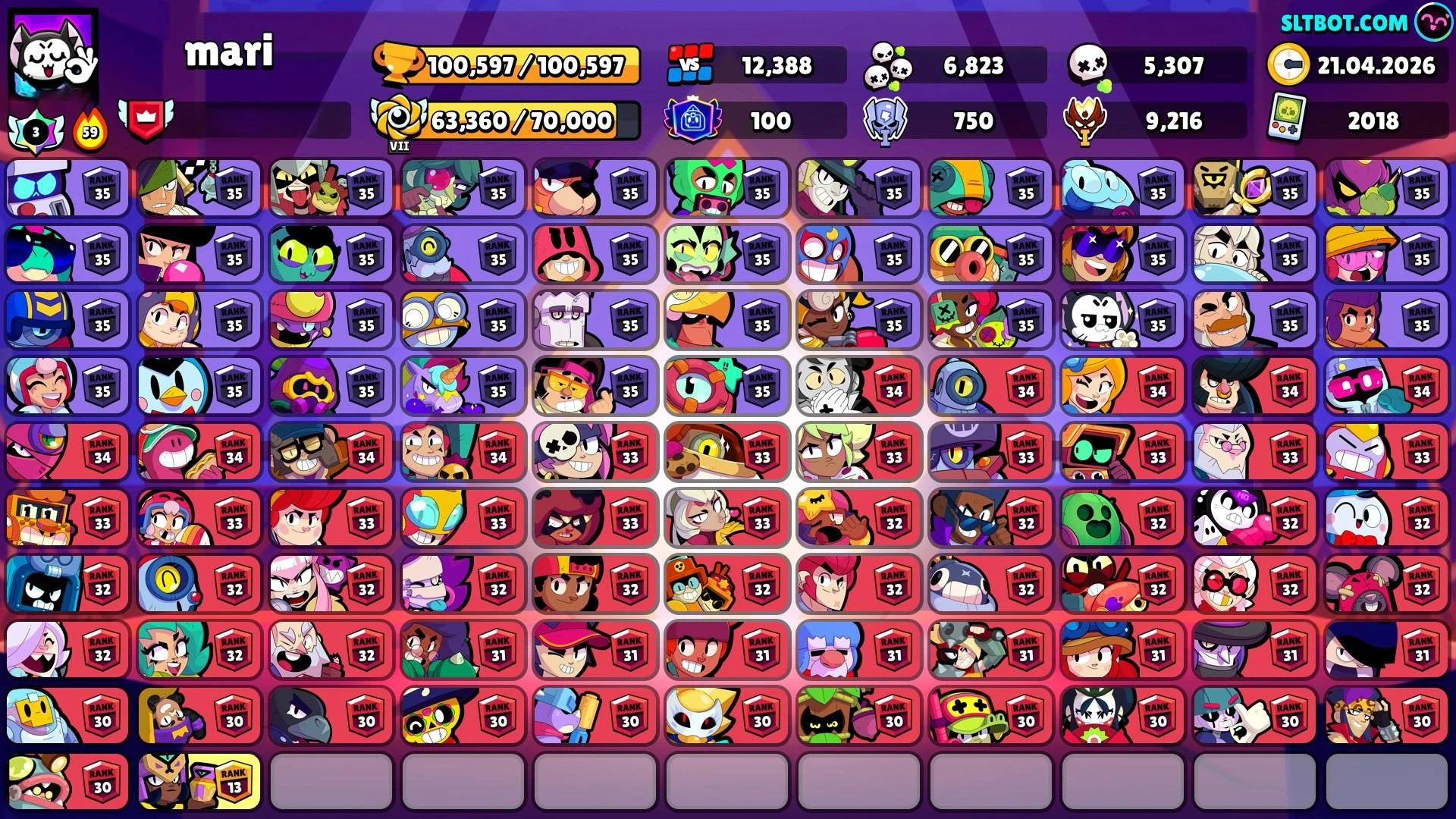 524 SKINS 💯 R35 LEGACY PIN 💜 PIN MATCHERINO 💜 3X MASTERS 2024 💜 3 OLD PRESTIGE 💜 100.597 TROPHIES 💜 101 MAX BRAWLERS 💛 22 BUFFIES 🔑 VIRUS 8-BIT 🧡 STAR SHELLY 🧡 CORSAIR COLT 🧡 FURIOUS FANG 🧡 REBEL LOLA 💯 90K 100K
