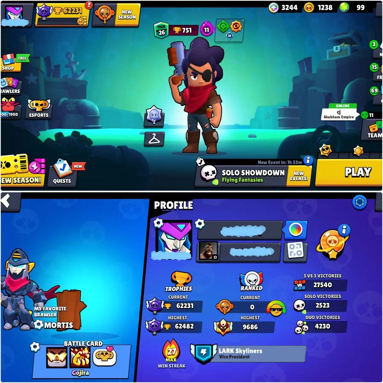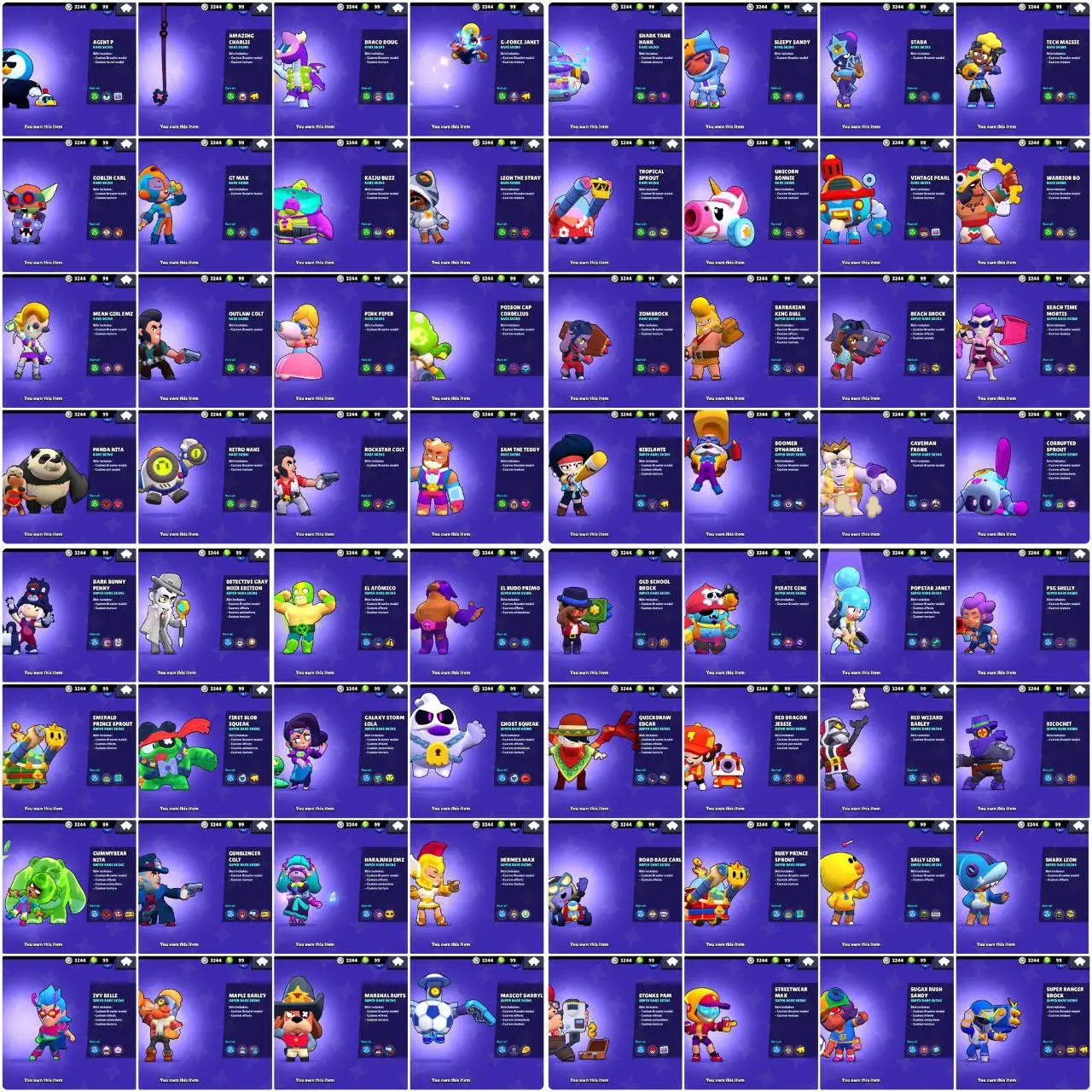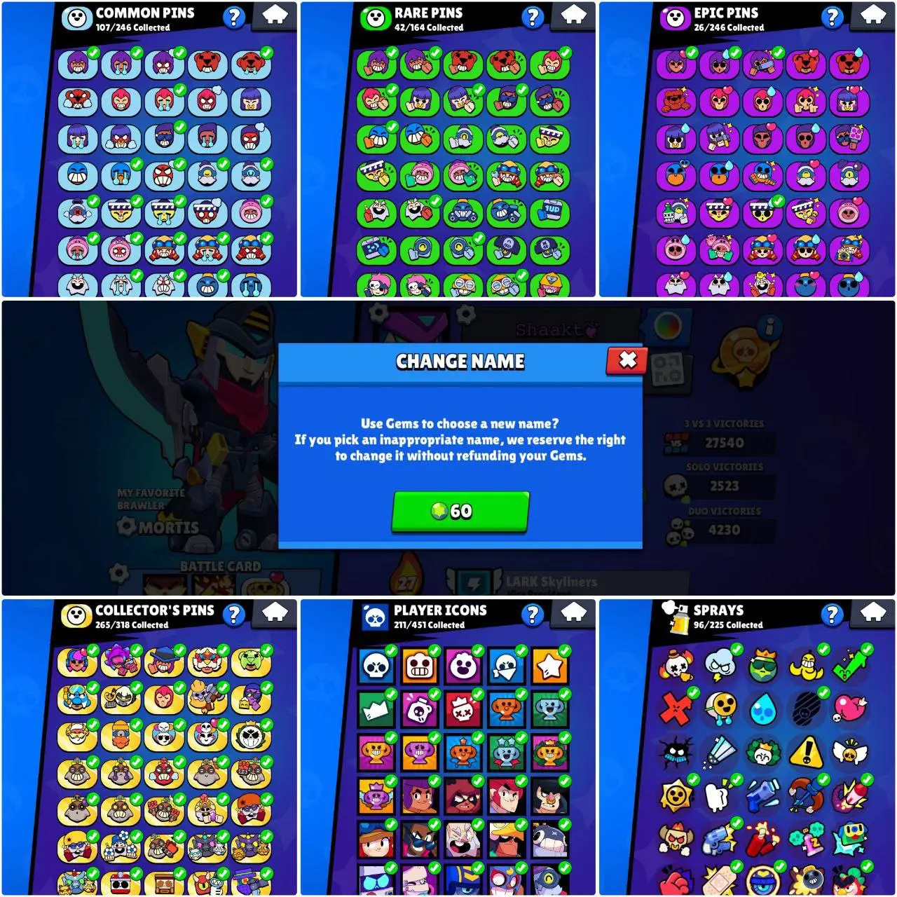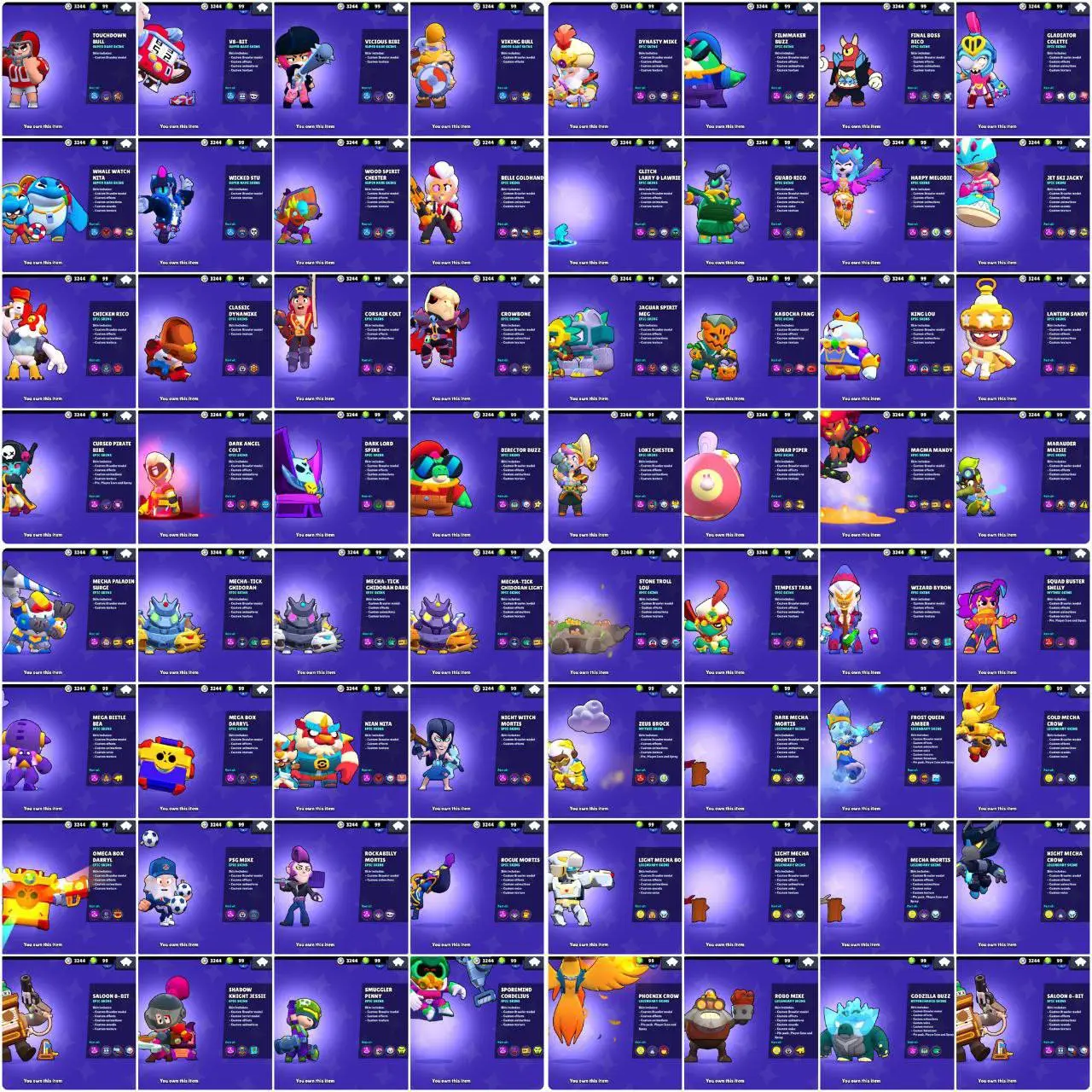 (RARE ACC) 120 OG SKINS | DARK MECHA MORTIS | CORSAIR COLT | 62230 TROPHIES 41 MAXED (26 HYPER) 81 BRAWLERS | 100 GEMS