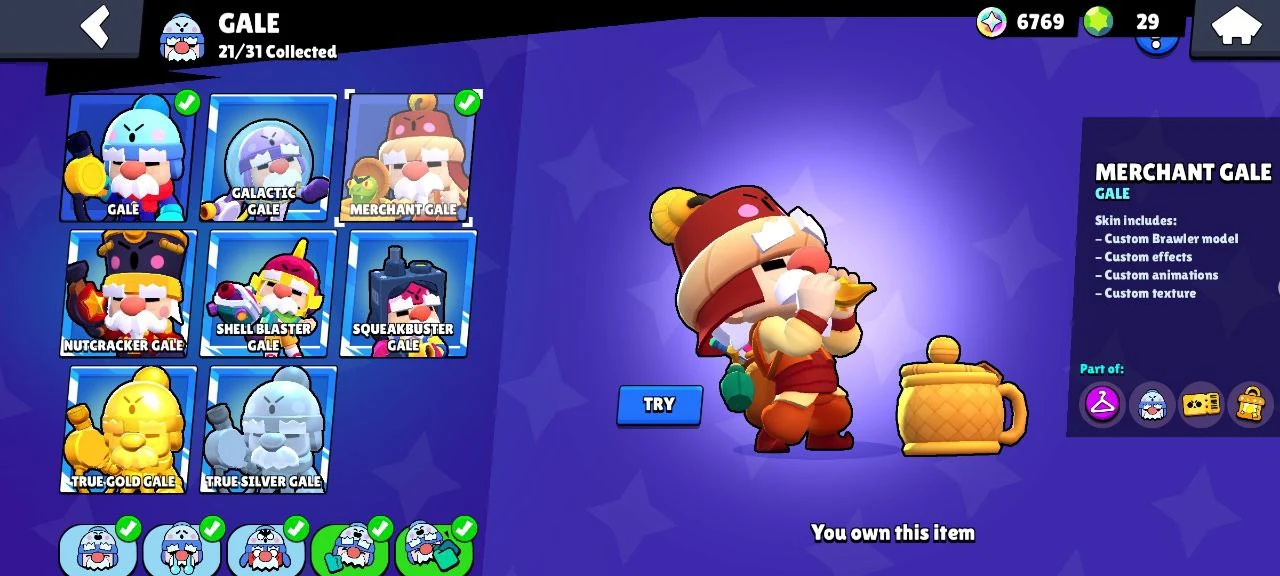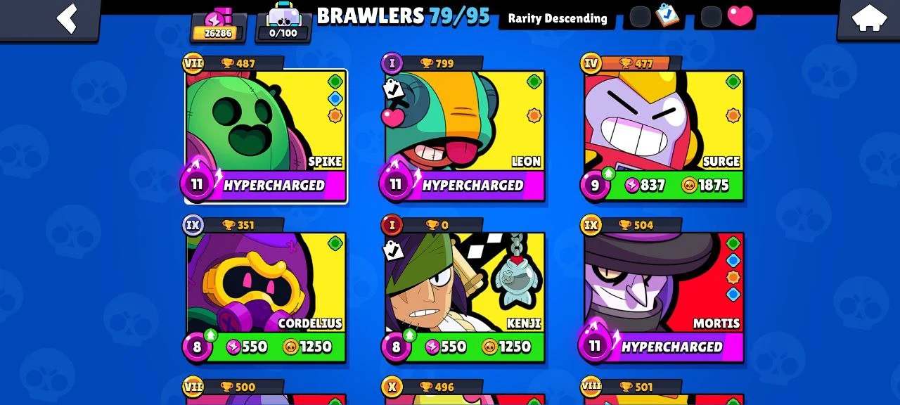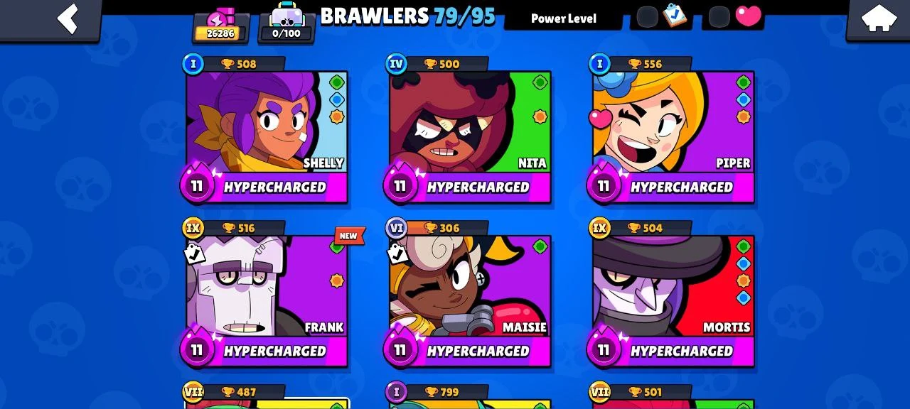 💥 STAR SHELLY 🌟 MERCHANT GALE 💼 26,286 TROPHIES ⚡ 8 HYPERCHARGED 💫 79/95 BRAWLERS ✨ 5 LEGENDARY 🎯 136 OG SKINS 🎨 RICOCHET 💫 S.B SHELLY 💥 BUNNY PENNY 💥 SURGE LIGHTYEAR 💥