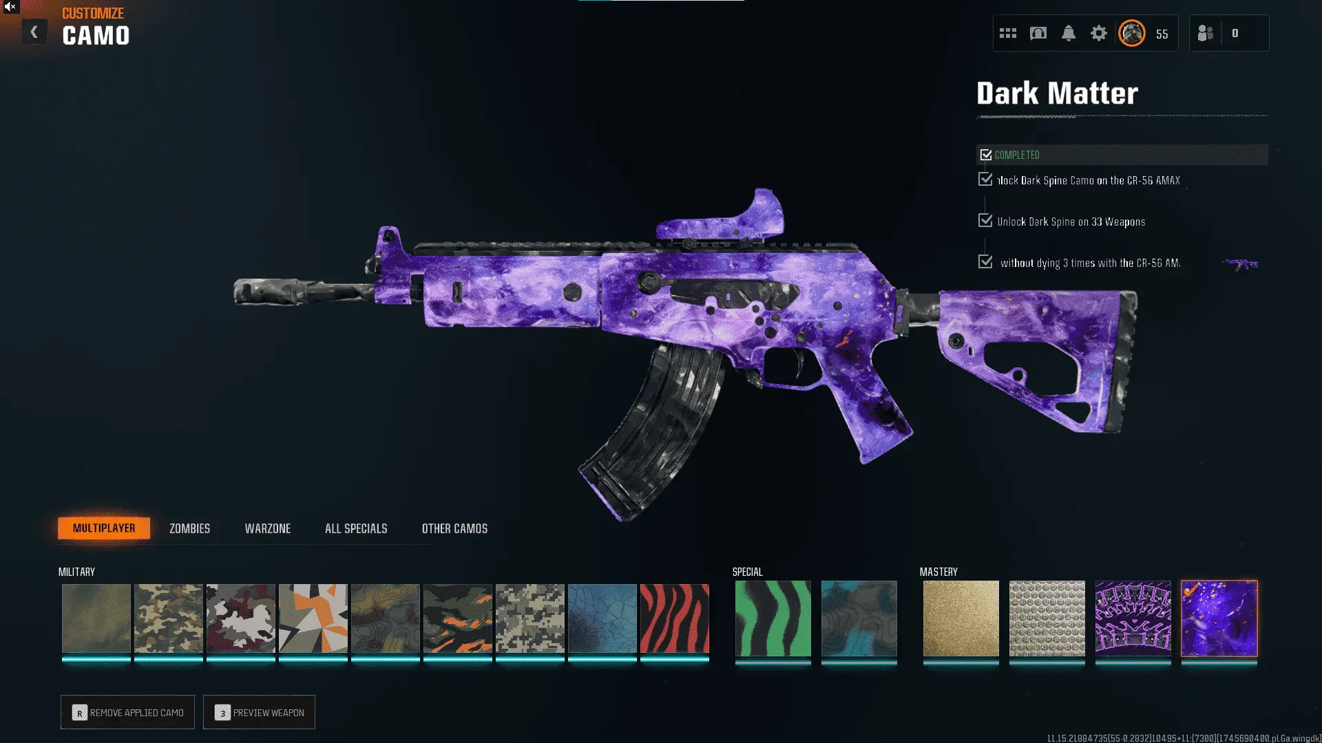 ⚡ BO6 / WZ4 Prestige 7 Dark Matter ⚡ | 🎖️ Level 55 | 💎 All 33 DM Weapons Unlocked | ⚔️ 18 Operators | ✨ 500+ Camos | 🌍 Cross-Platform Linkable | ✅ 100% Legit & Secure – Full Access