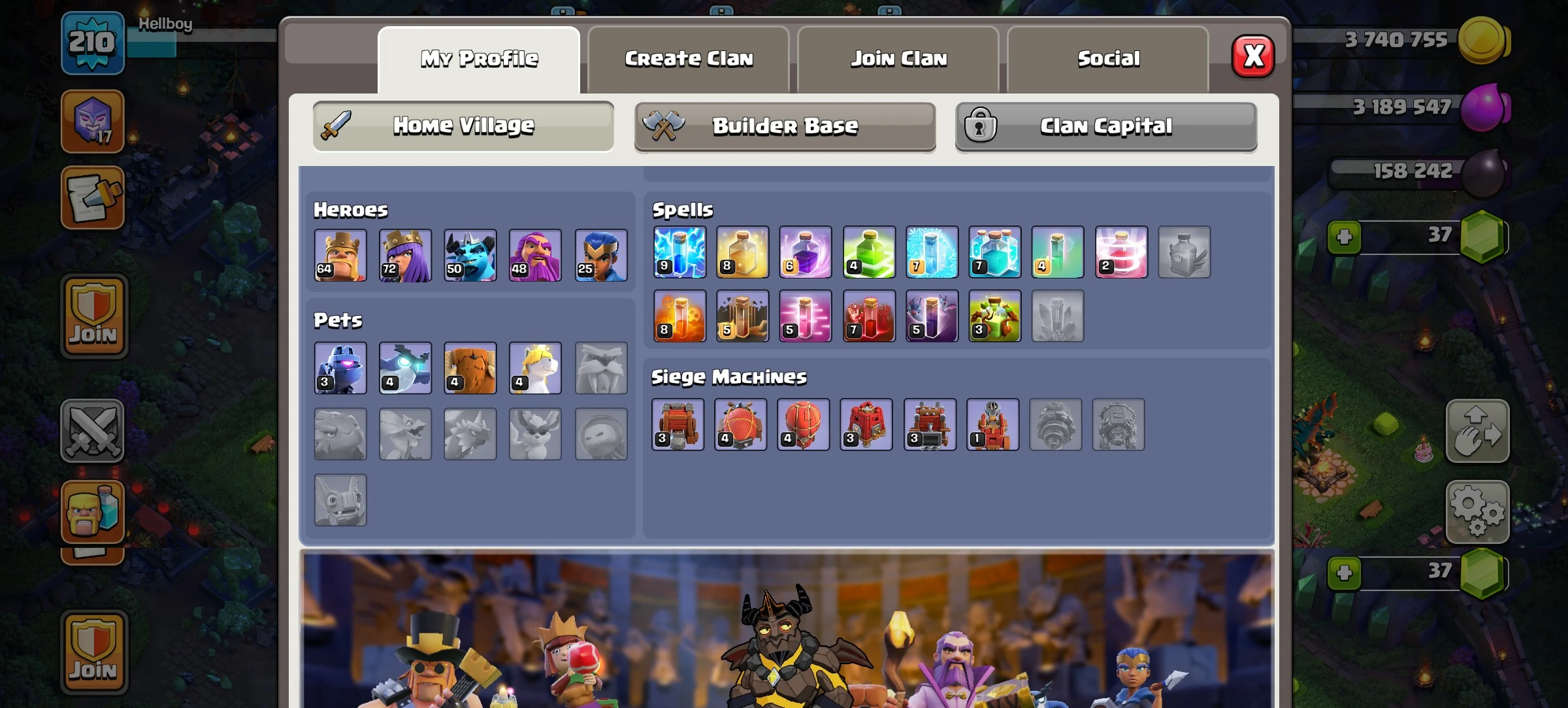 1 Scenery 🌟 , Th 15 Semi Max 💥 , 4 Epic Equipments , Hero 64-72-50-48-25 ⚡ , 5 max equipments 💥 , 106 Cwl Medals 🥇 , 4 Hero skins 💪 , Legend Touched 🥶, Name Change : 500 Gems 💎 | Both Android and iOS | Instant Delivery 🚚