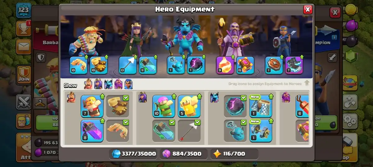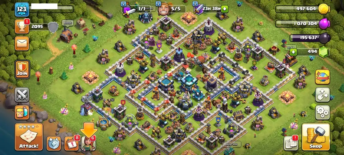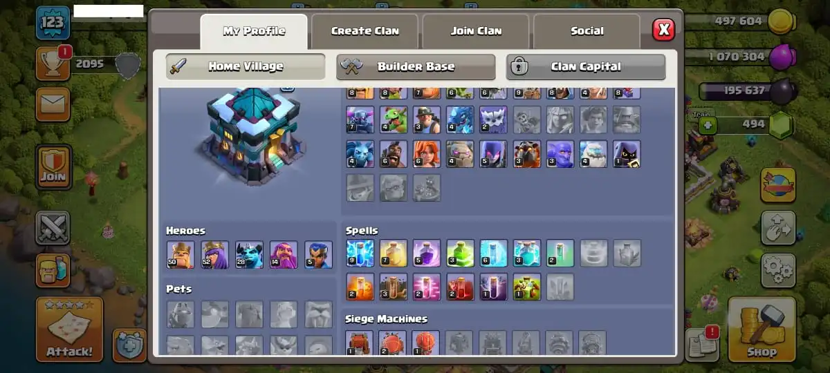 1490✨TH13✨Level 123✨King 50 Queen 52 Minion 28 Warden 14 RC 5✨Gems 494