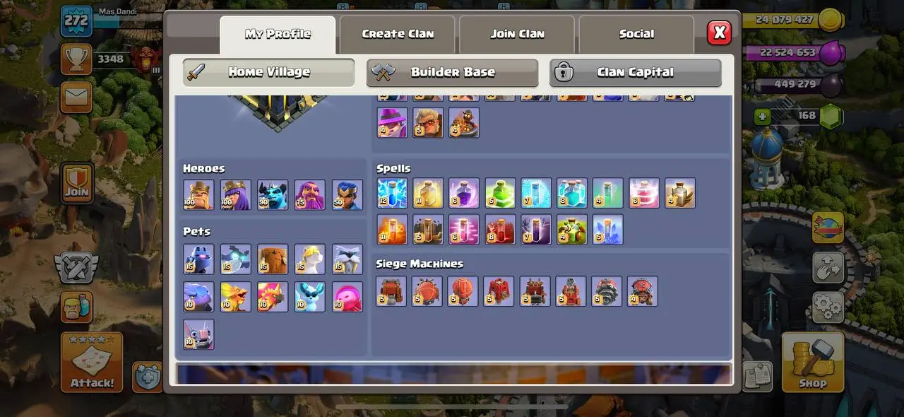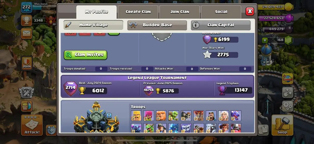 24. Premium Townhall 17 Max | Nothing Left | Ready For 18 | All Equipment Max Type | 272 High Xp | Full Stacked | Legendary Scenery | Max Builder Base| Super Cheap Price |