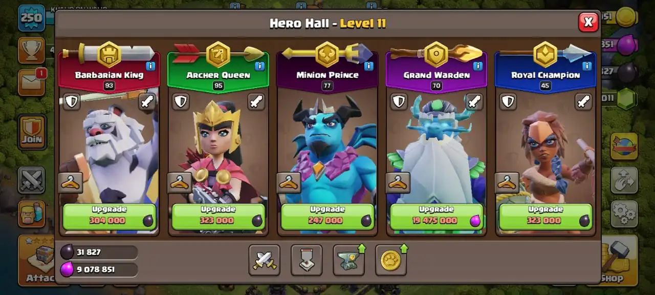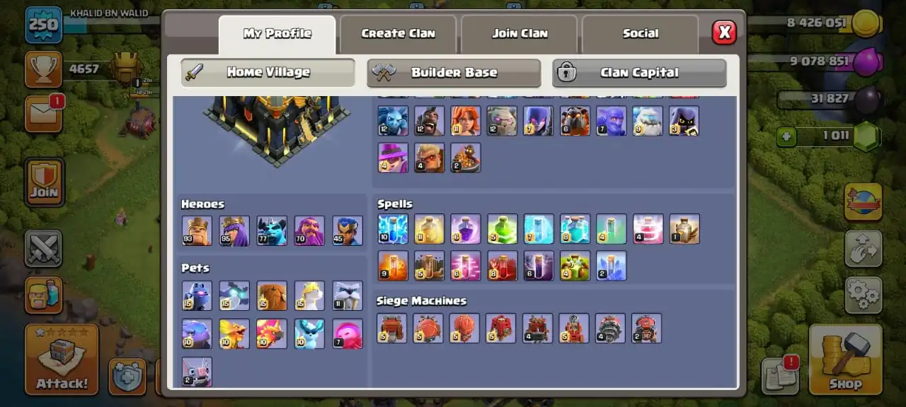 5 scenery and 25 heroes skinđ„TH 17 almost maxđ„high heroes level 93/95/77/70/45đ„max petsâ ïžfull equipment 31/32âïžmax builder base