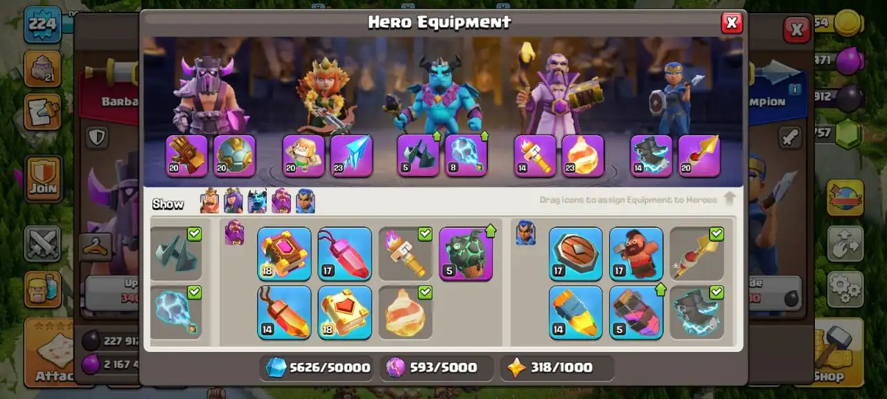 Big saleđ„TH 16 max defenseđ„max heroes levelâ ïžfull equipment 33/33âïž6 builderâsâïžall helper openedâ