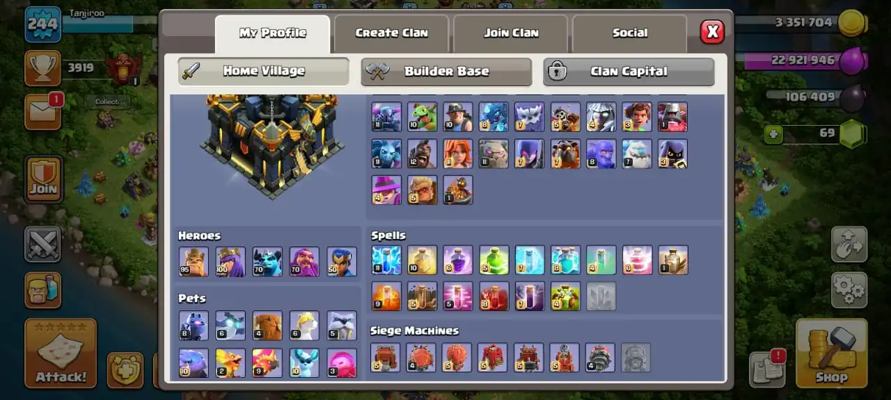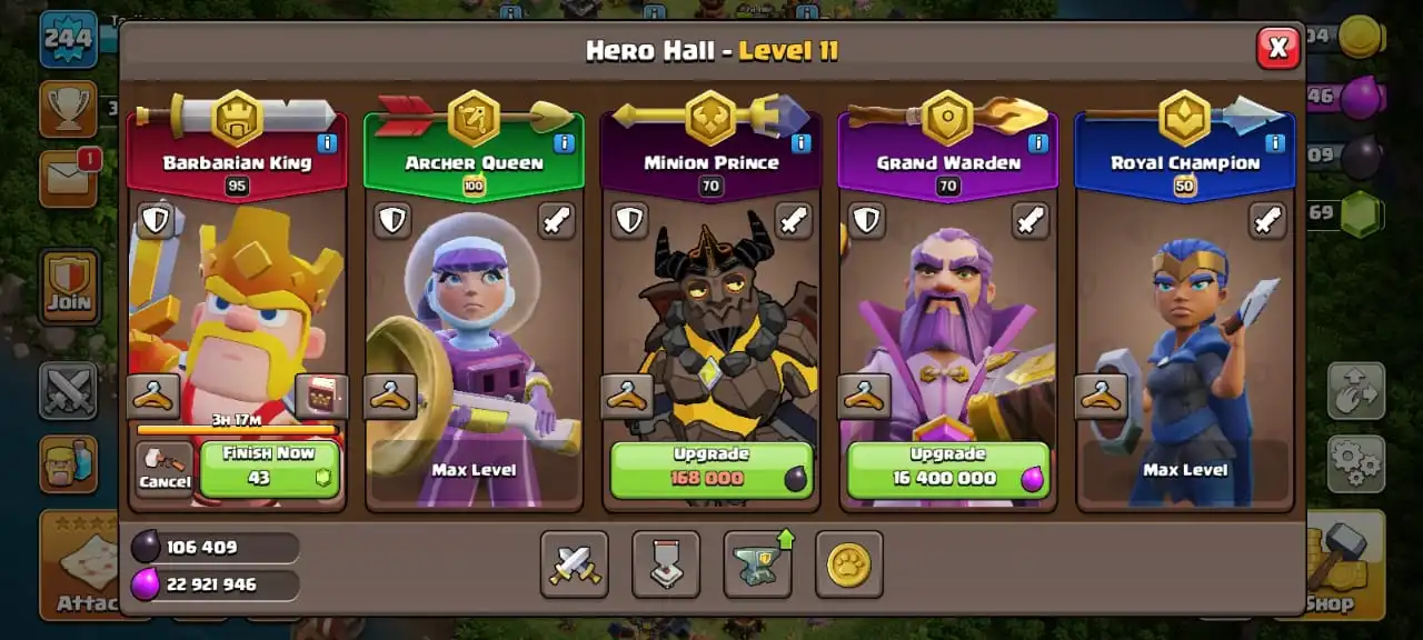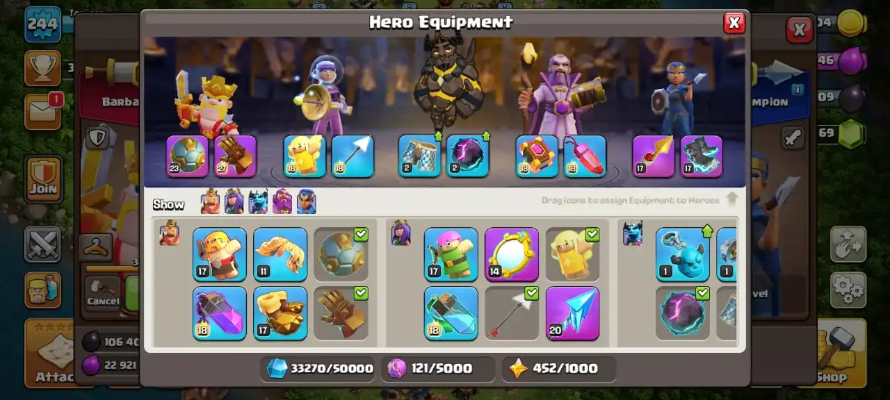 Big saleđ„TH 17 almost maxđ„max wallsđ„high heroes level 95/100/70/70/50â ïž8 epic equipmentâïž6 builderâsâ