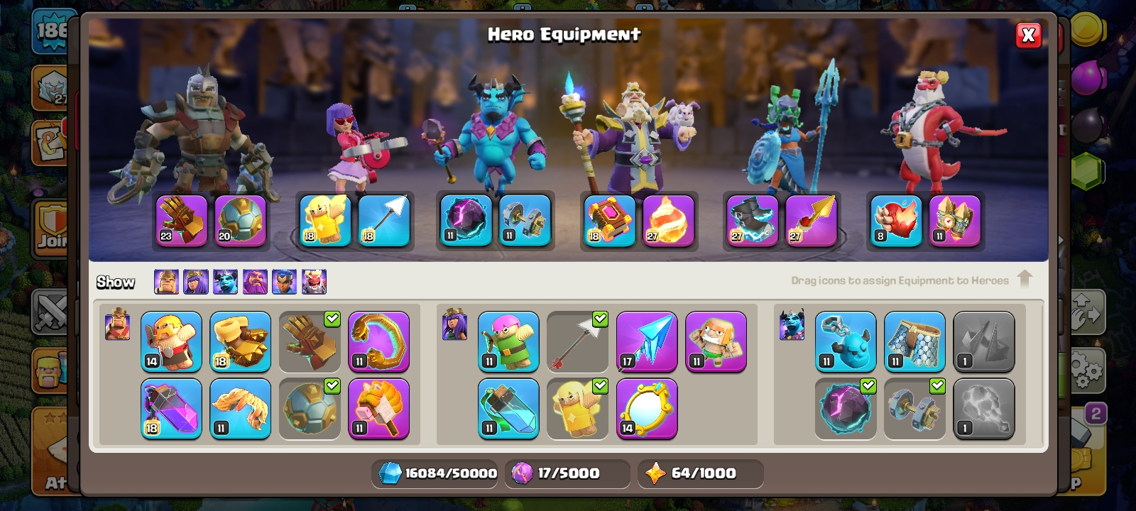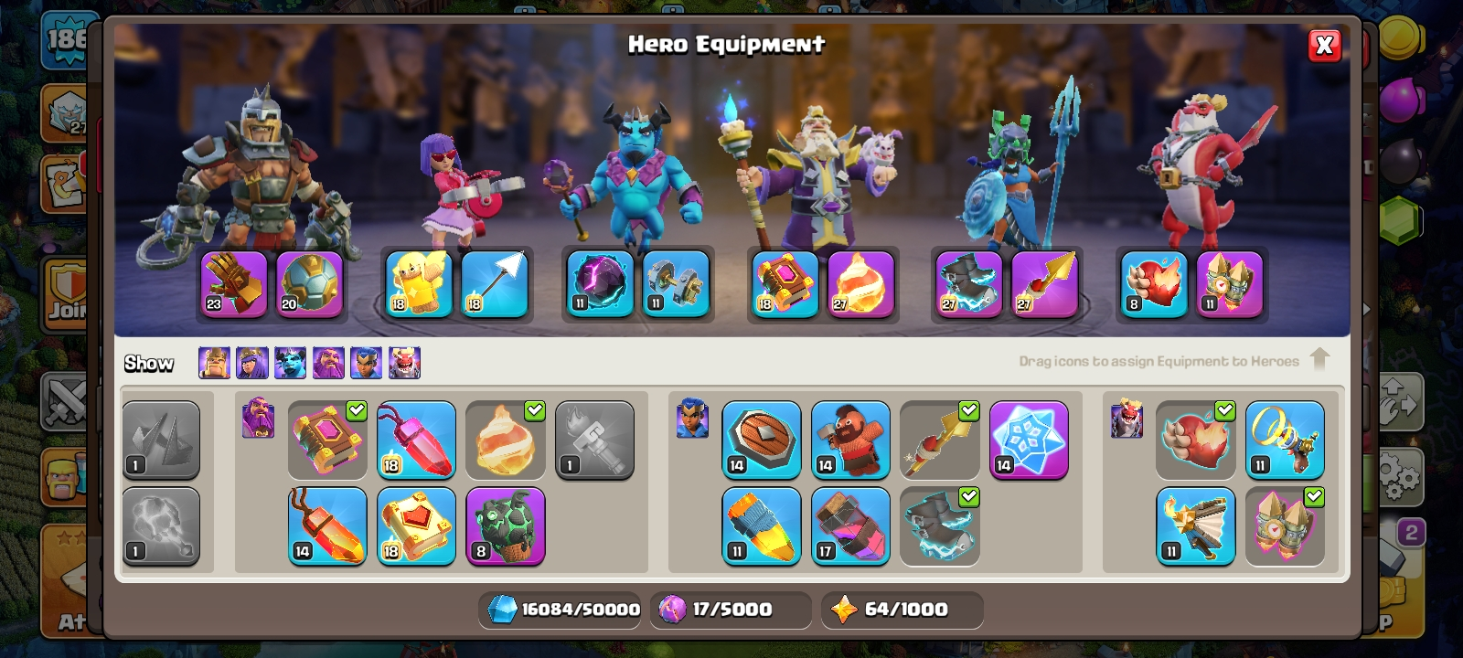 TH 17 ready to warđ„high heroes 95/95/72/71/48/7â ïž3 max epic equipmentâïž6 builderâsâ