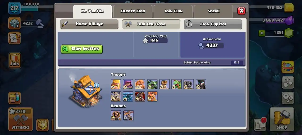 TH 16 almost maxđ„high heroes level 81/77/60/62/36â ïžfull equipment 32/33âïž6 builderâsâ