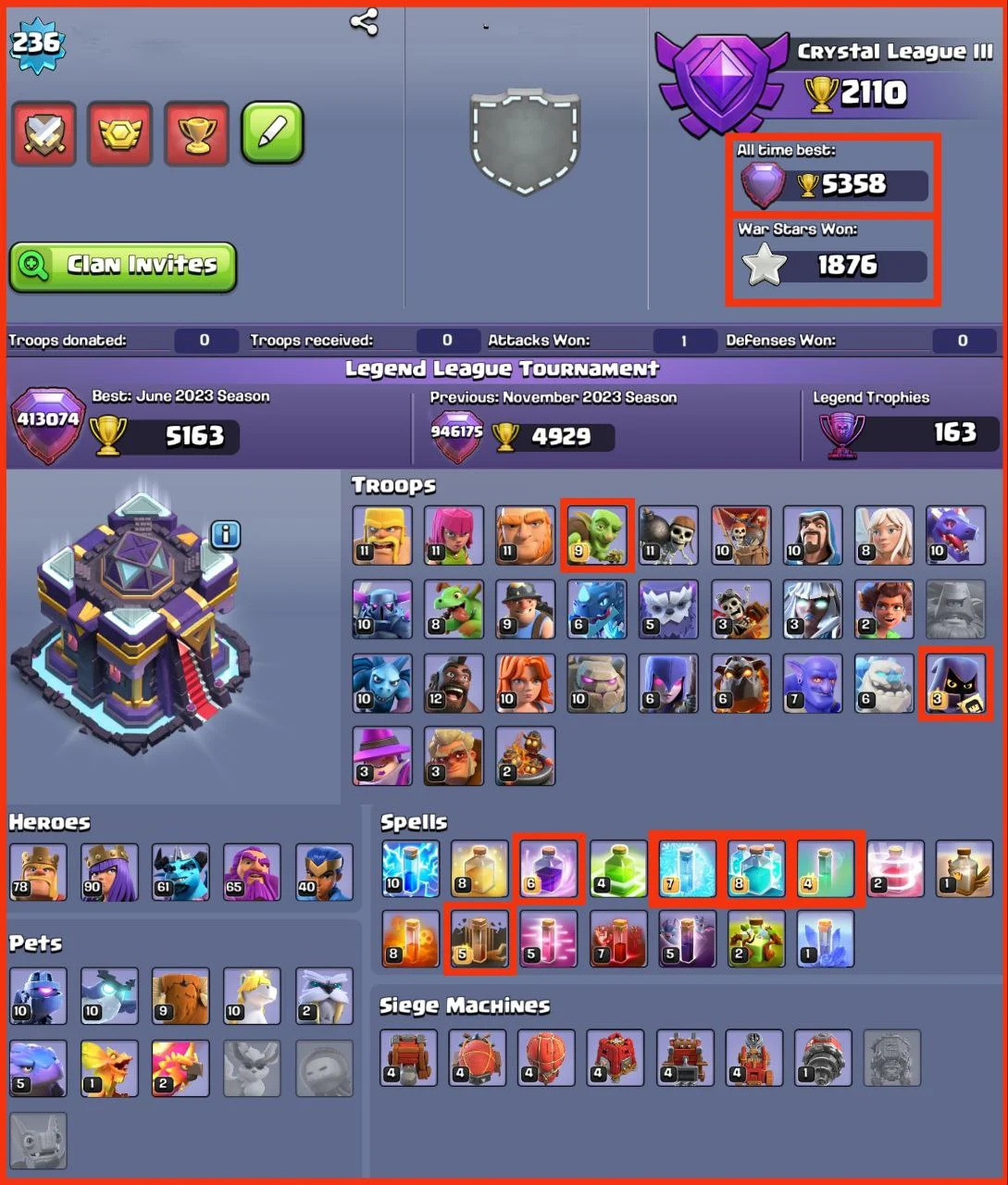đ HALLOWEEN 45% OFF SALE đâšïžTH 15 MAX âĄ{ GG 13 & LP 08 } 2 EPIC EQUIPMENT đ©ž236 XP LVLâš 1876 WAR STAR đ OP OBSTACLES đ„ 3 HOME BASE SCENERY đź 4786 RAID MEDALS đ
