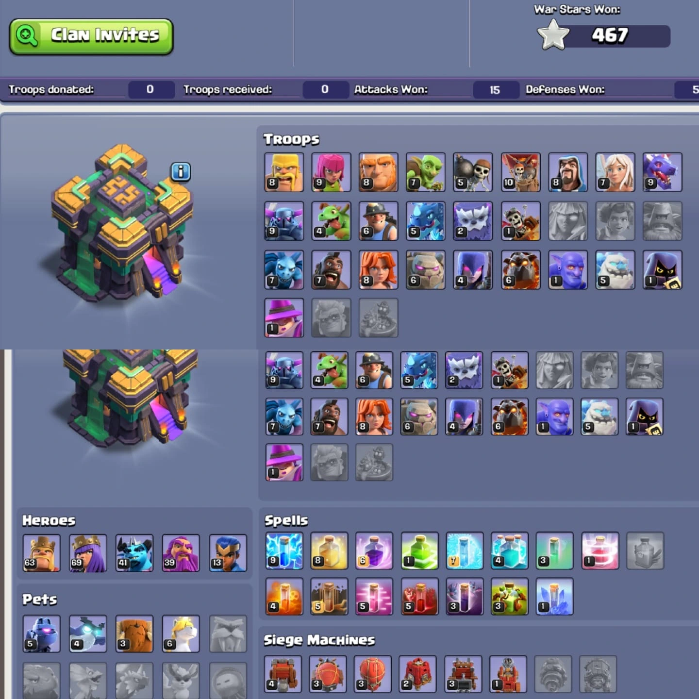 🥀[ICE QUEEN SKIN]💐 TH14 SEMI | 🥳HERO:63-69-39-13 |🌸 XP:166 | 💐RAID MEDALS | 🍁FREE RENAME | 🌟400+WARSTARS💥
